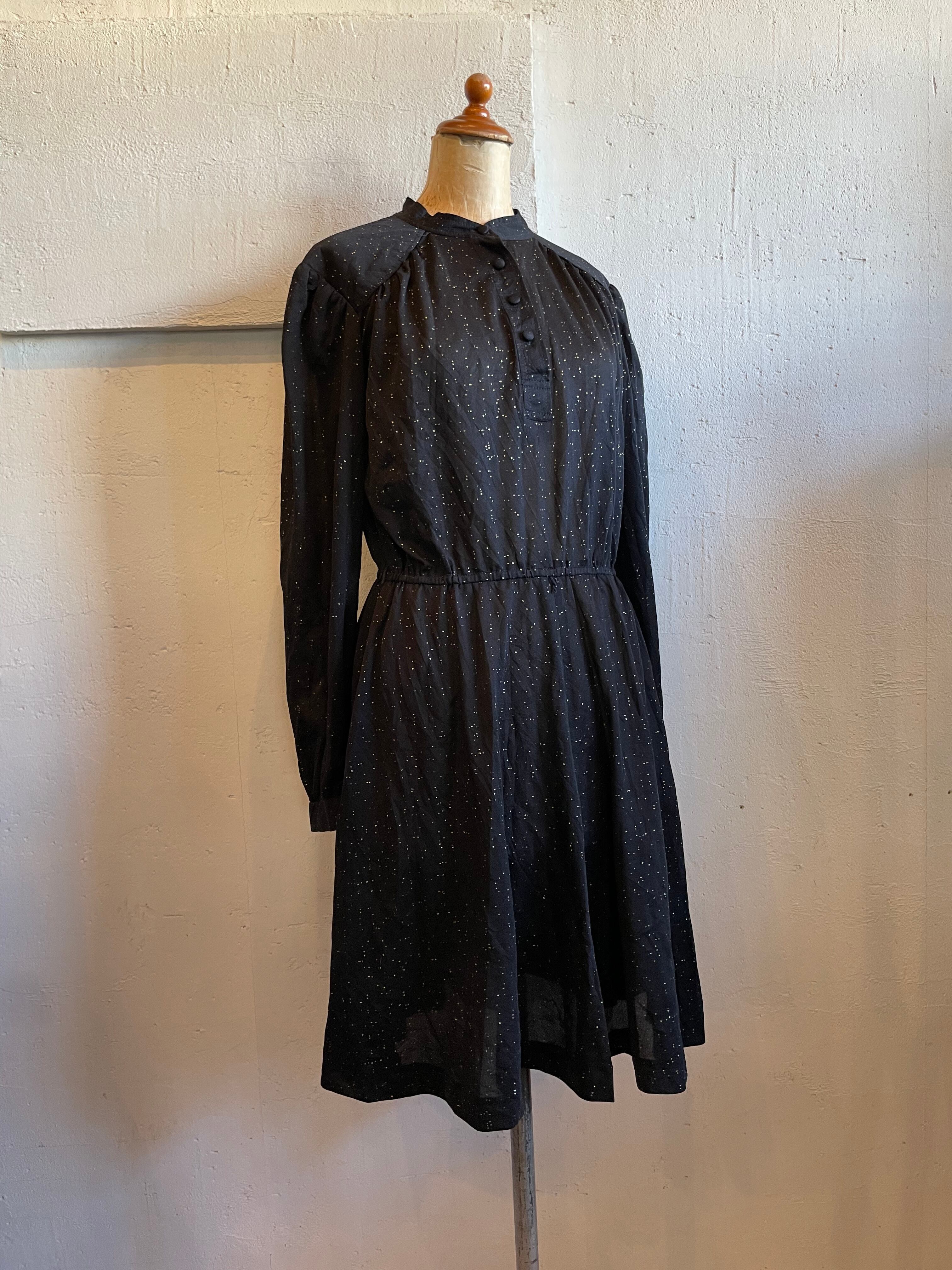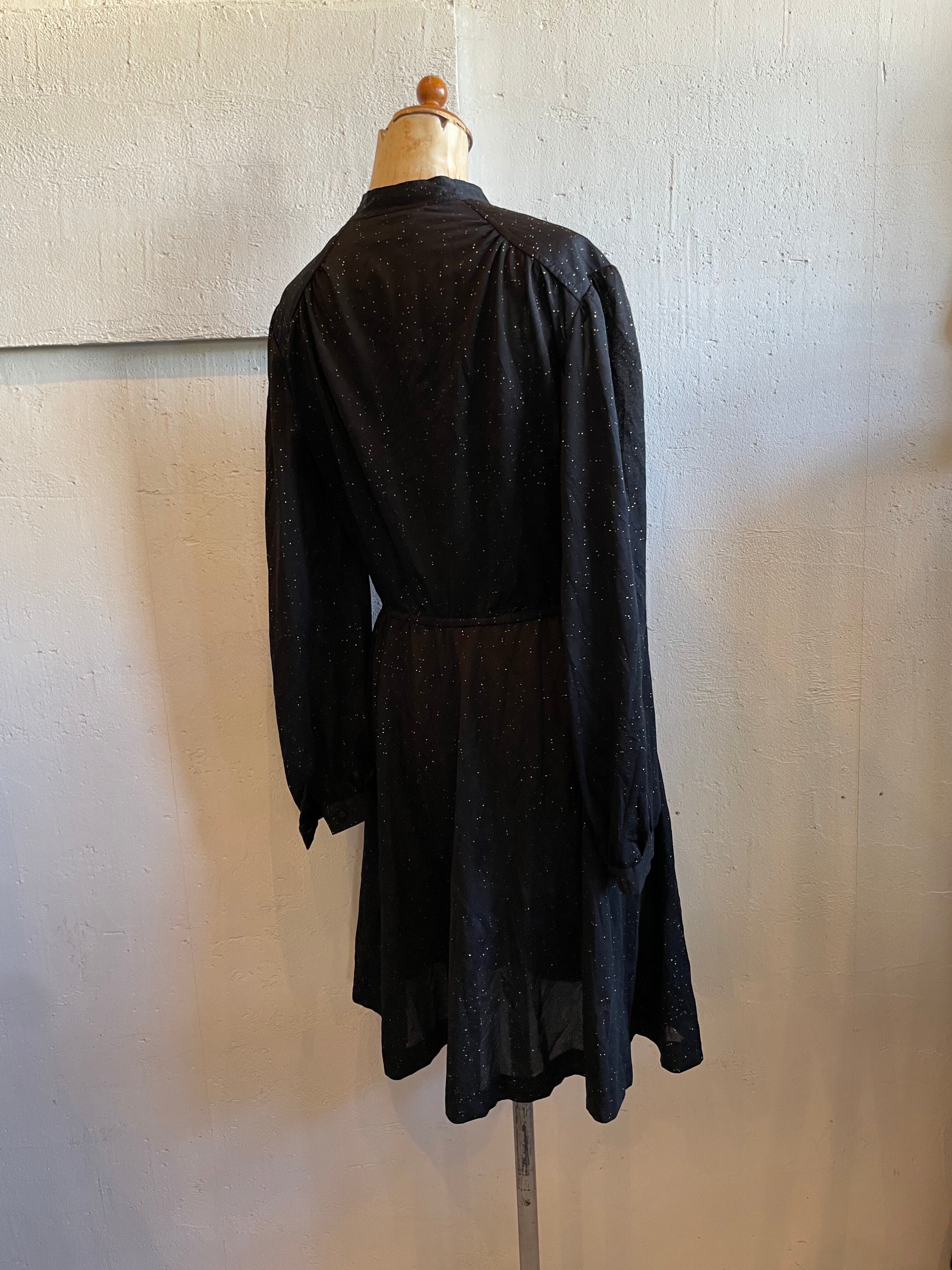 ブラックミニワンピース ゴールドラメ ヴィンテージ 古着