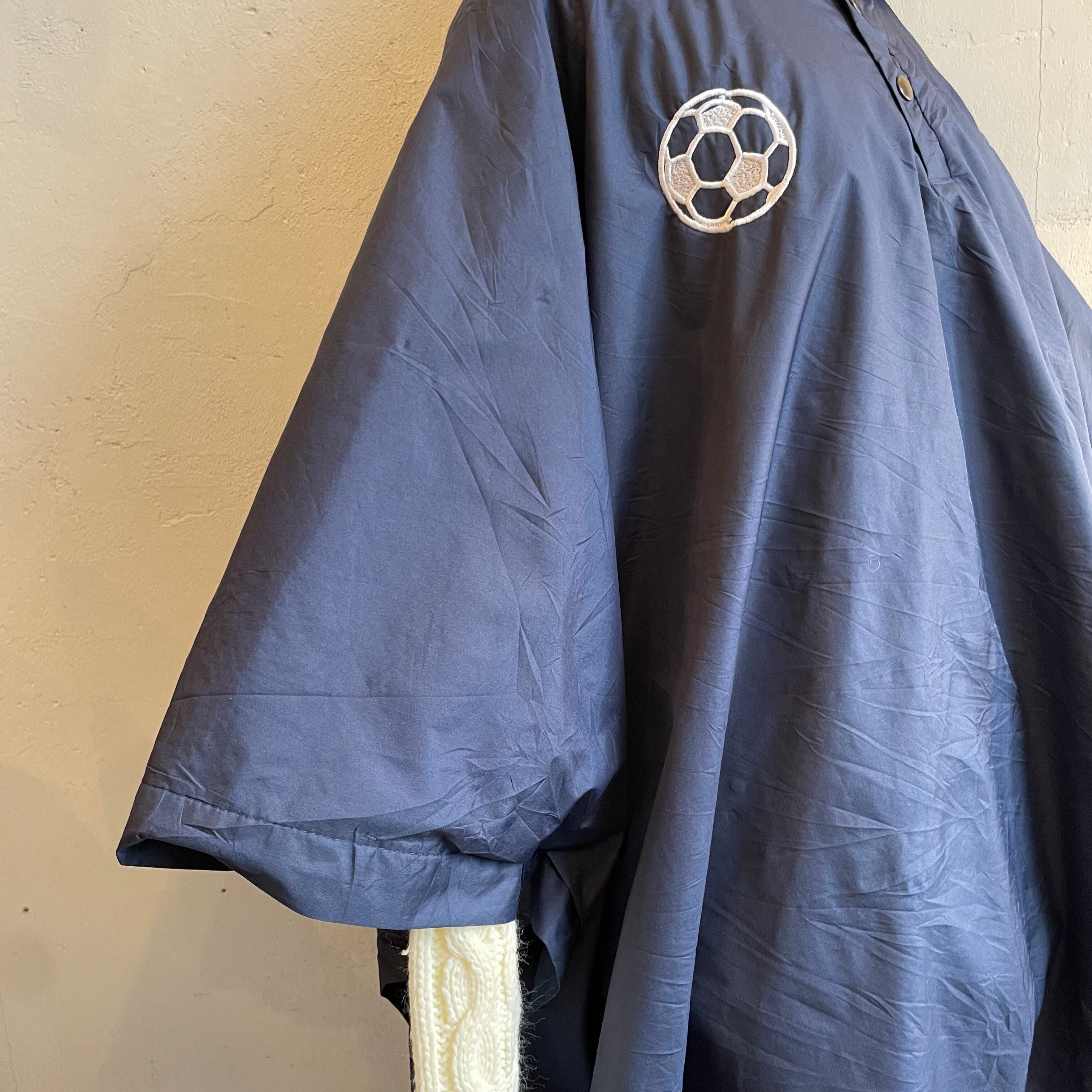 サッカーボール×トラ ポンチョ ナイロン インナーボア フード ヴィンテージ 古着