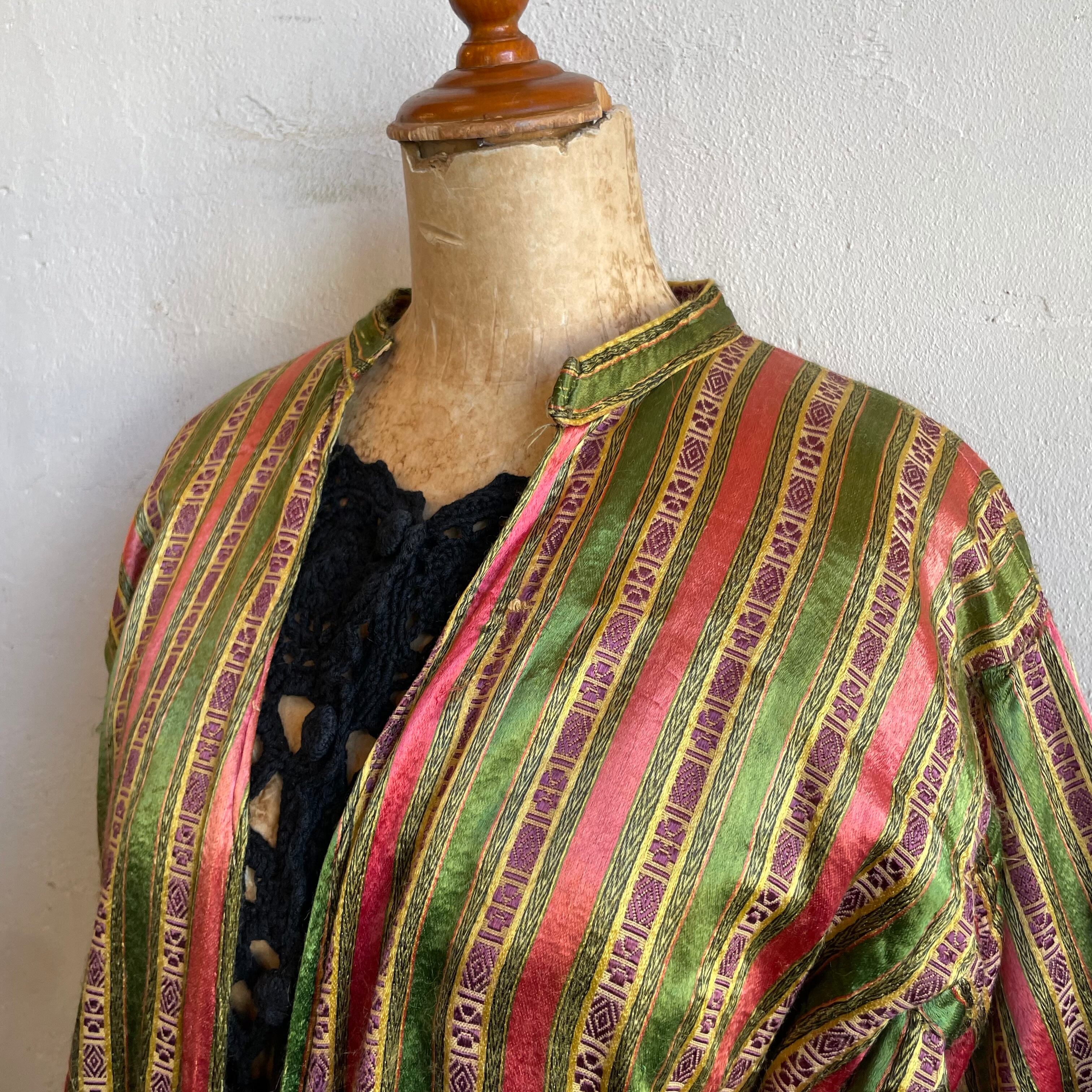 フリンジガウン ストライプ×フラワー 民族衣装 ヴィンテージ 古着