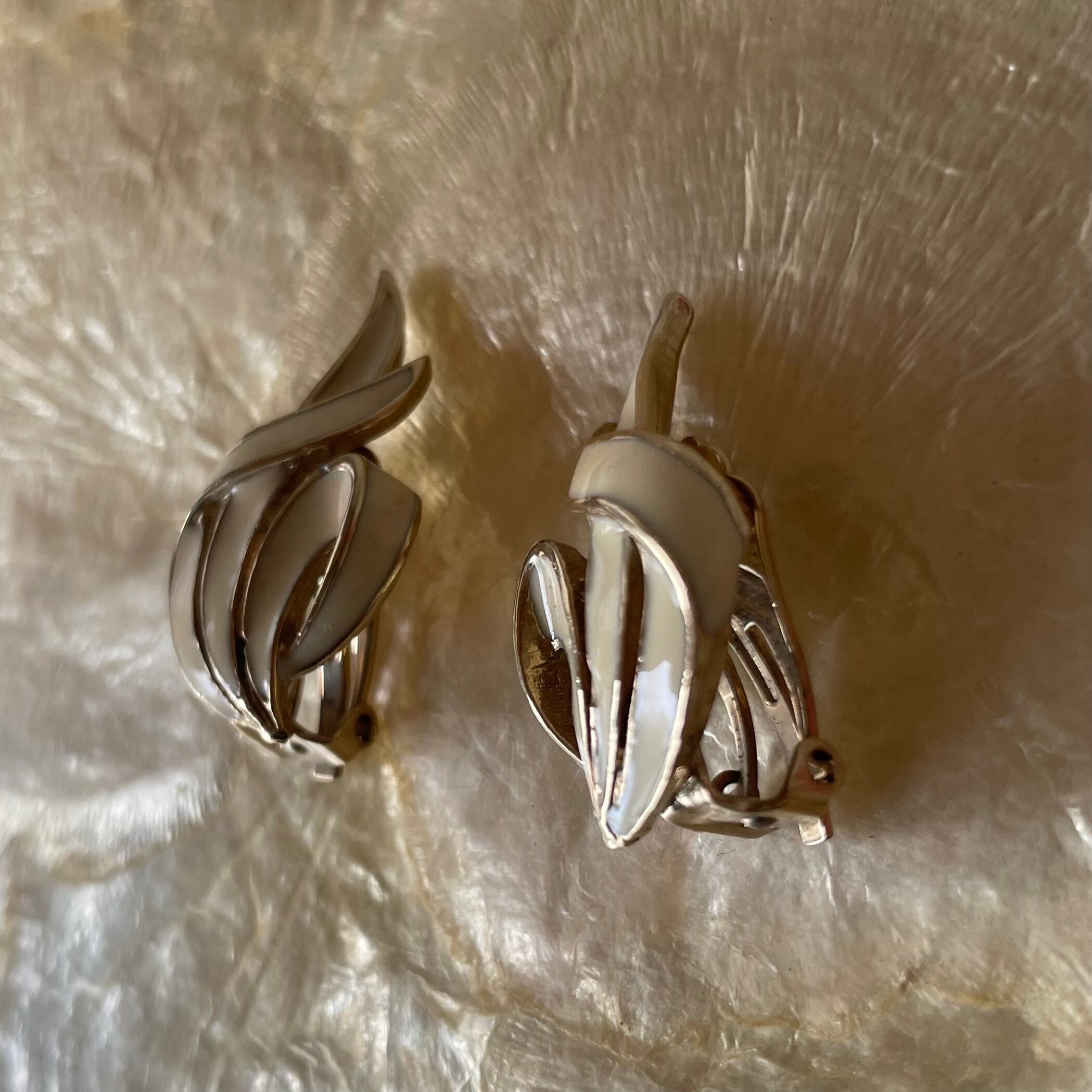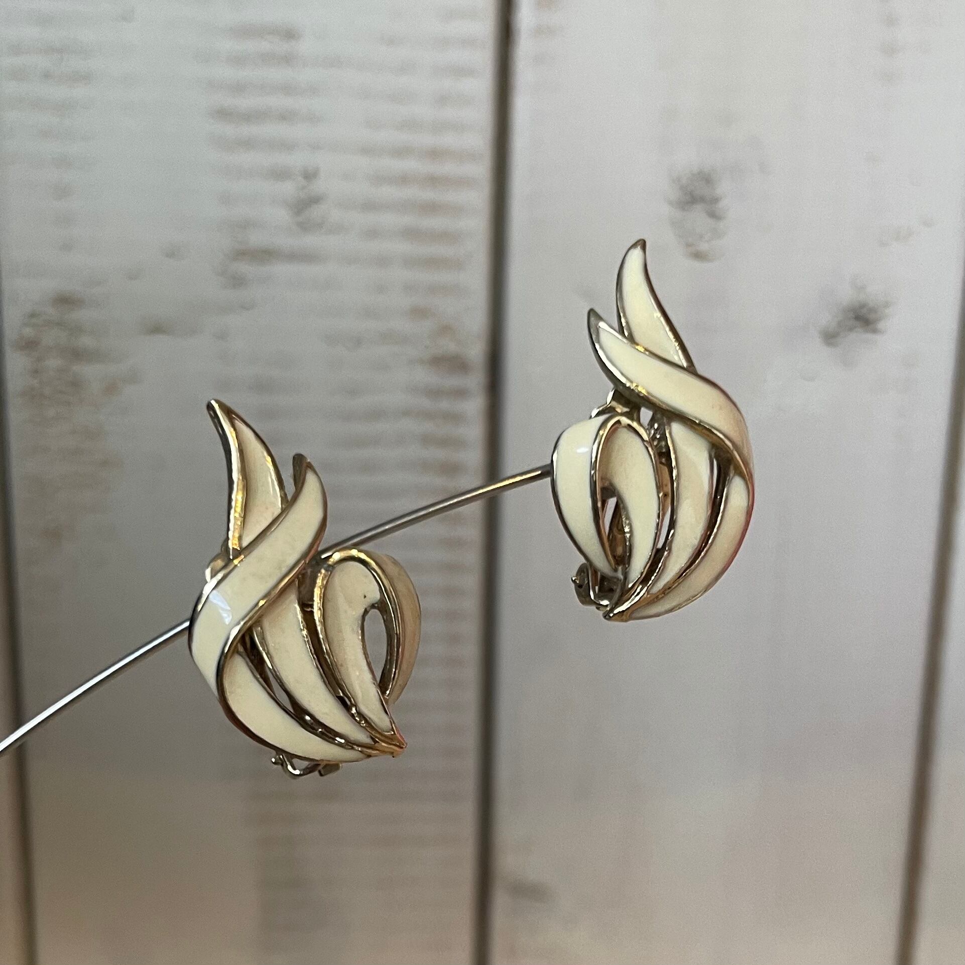 ホワイト×ゴールドカラー イヤリング ヴィンテージ アクセサリー