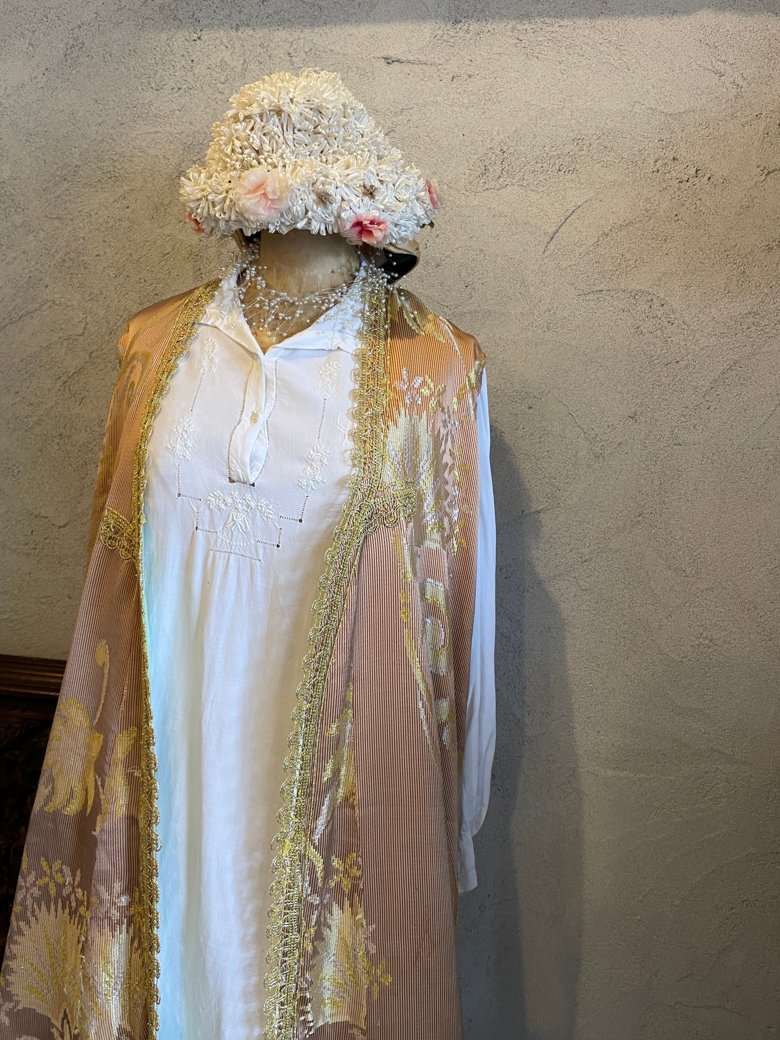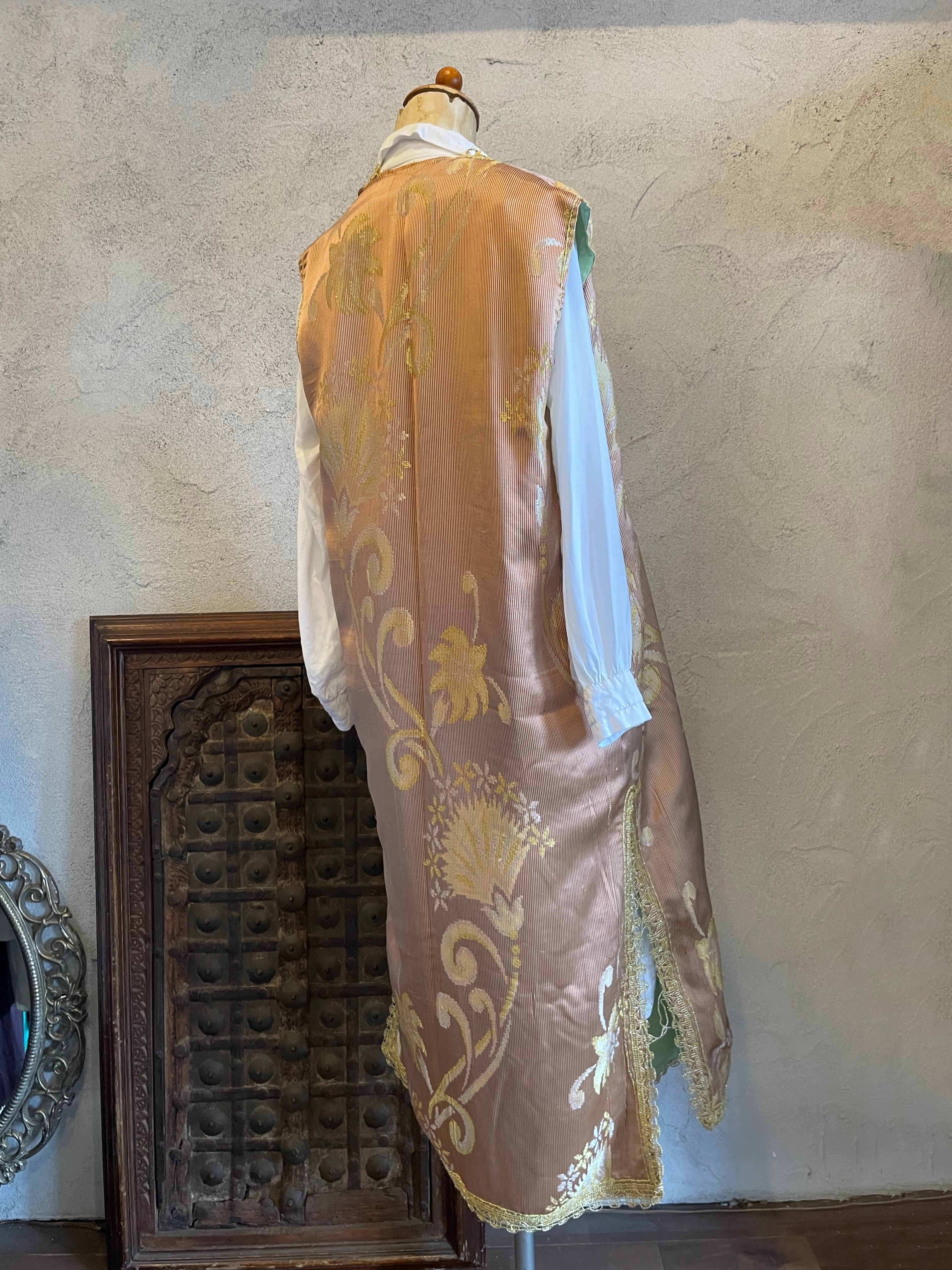 ロングベスト ロングジレ 光沢 刺繍 レース ヴィンテージ 古着
