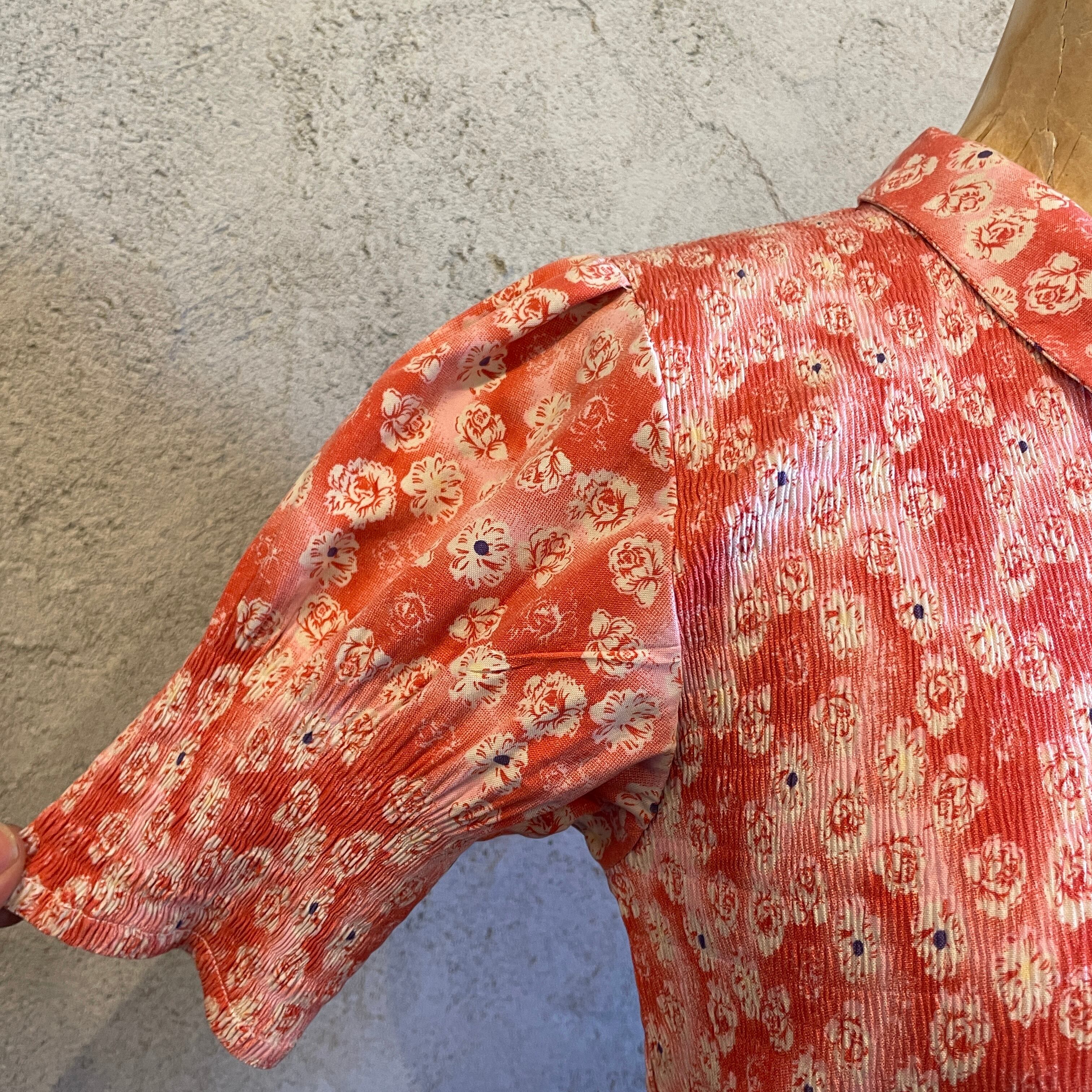 総柄フラワーワンピース シャーリング ヴィンテージ 古着