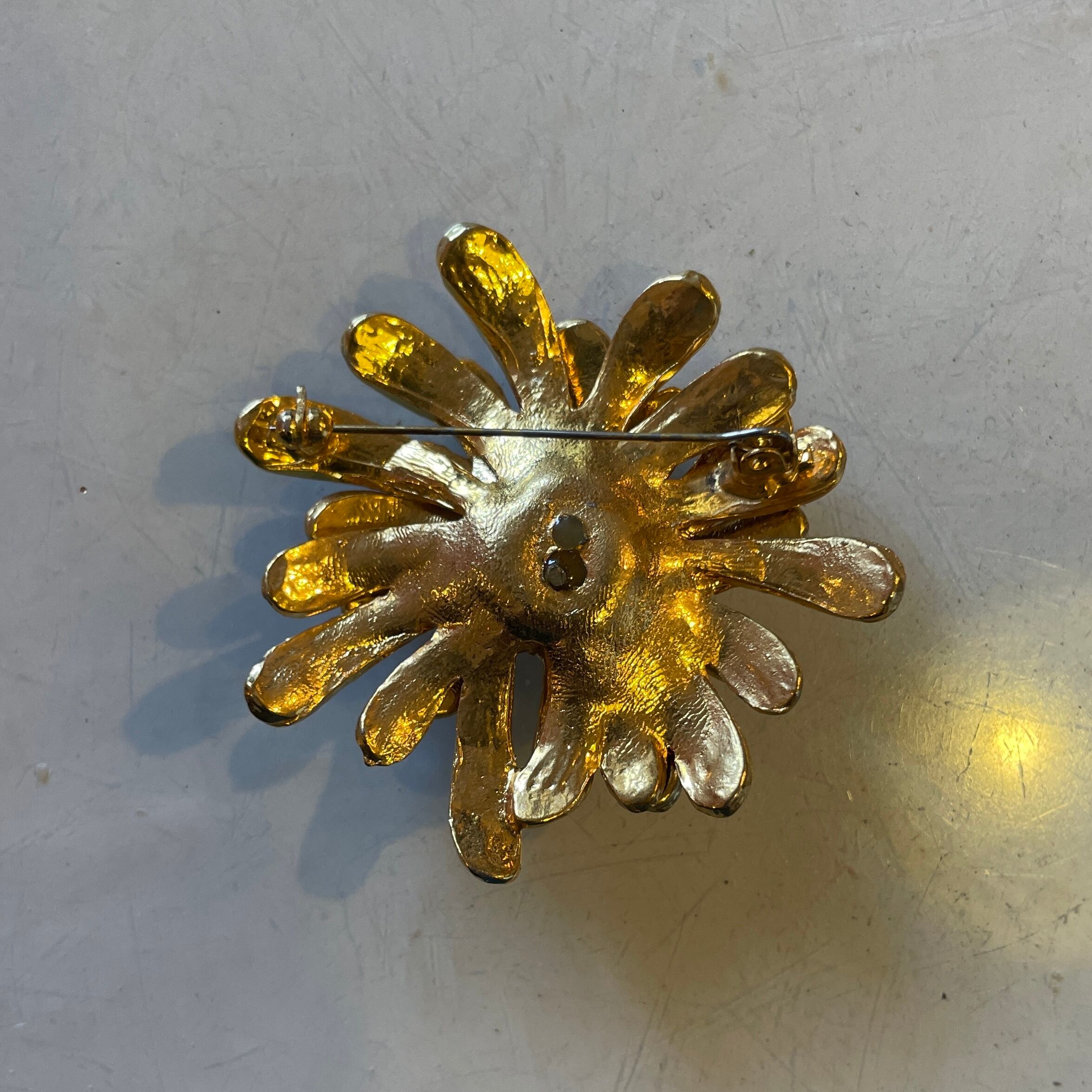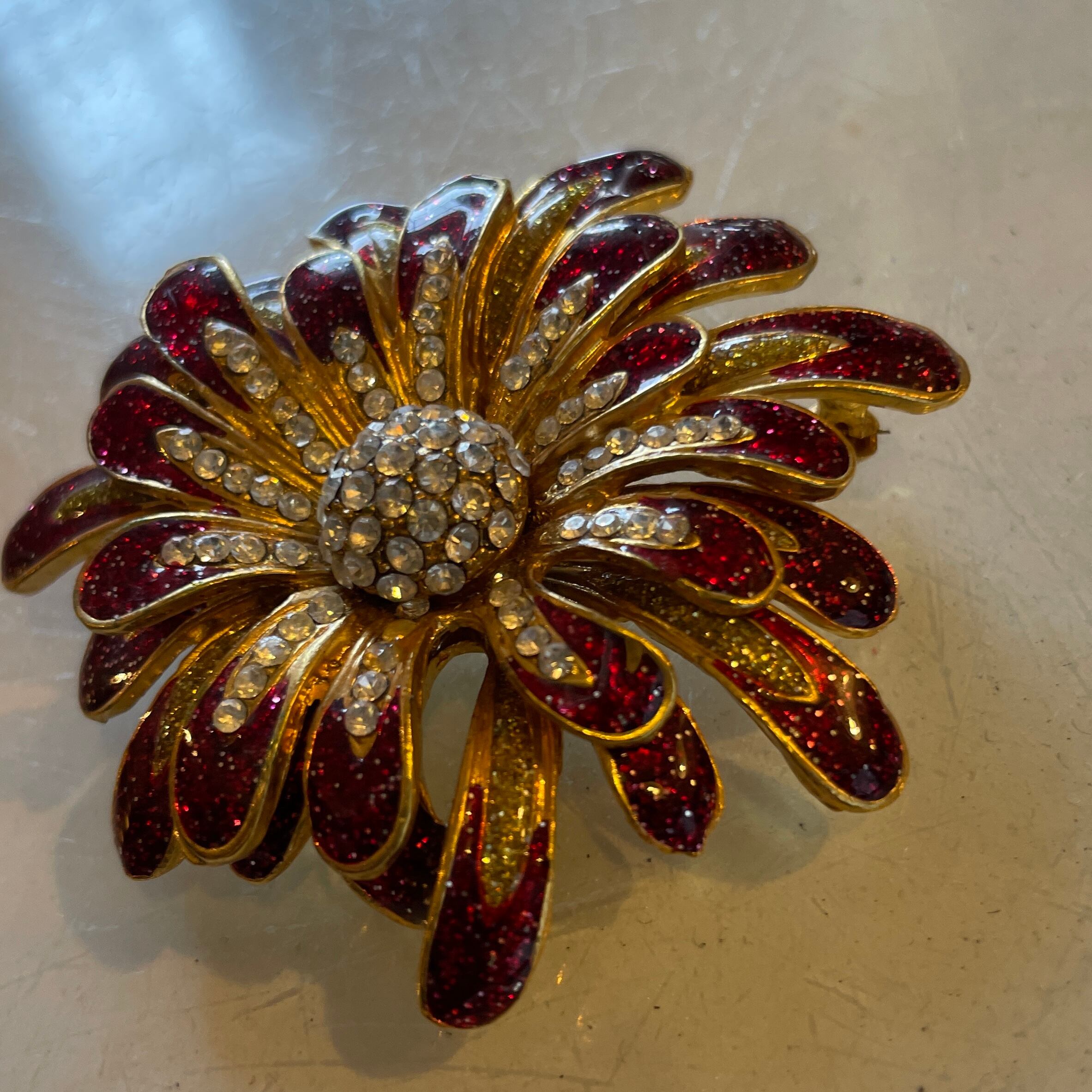 フラワー ブローチ ラインストーン レッド×ゴールド ヴィンテージ アクセサリー