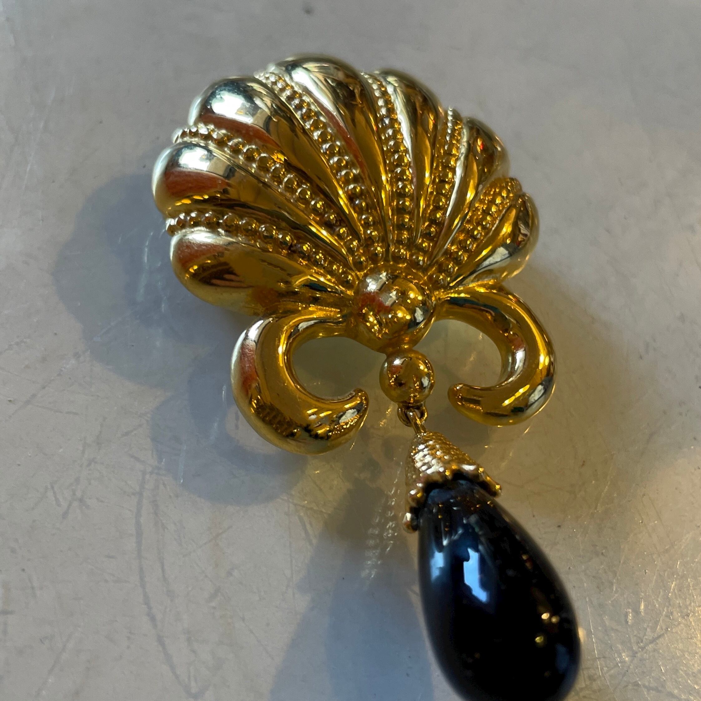 シェルデザインブローチ ブラック ゴールド ヴィンテージ アクセサリー