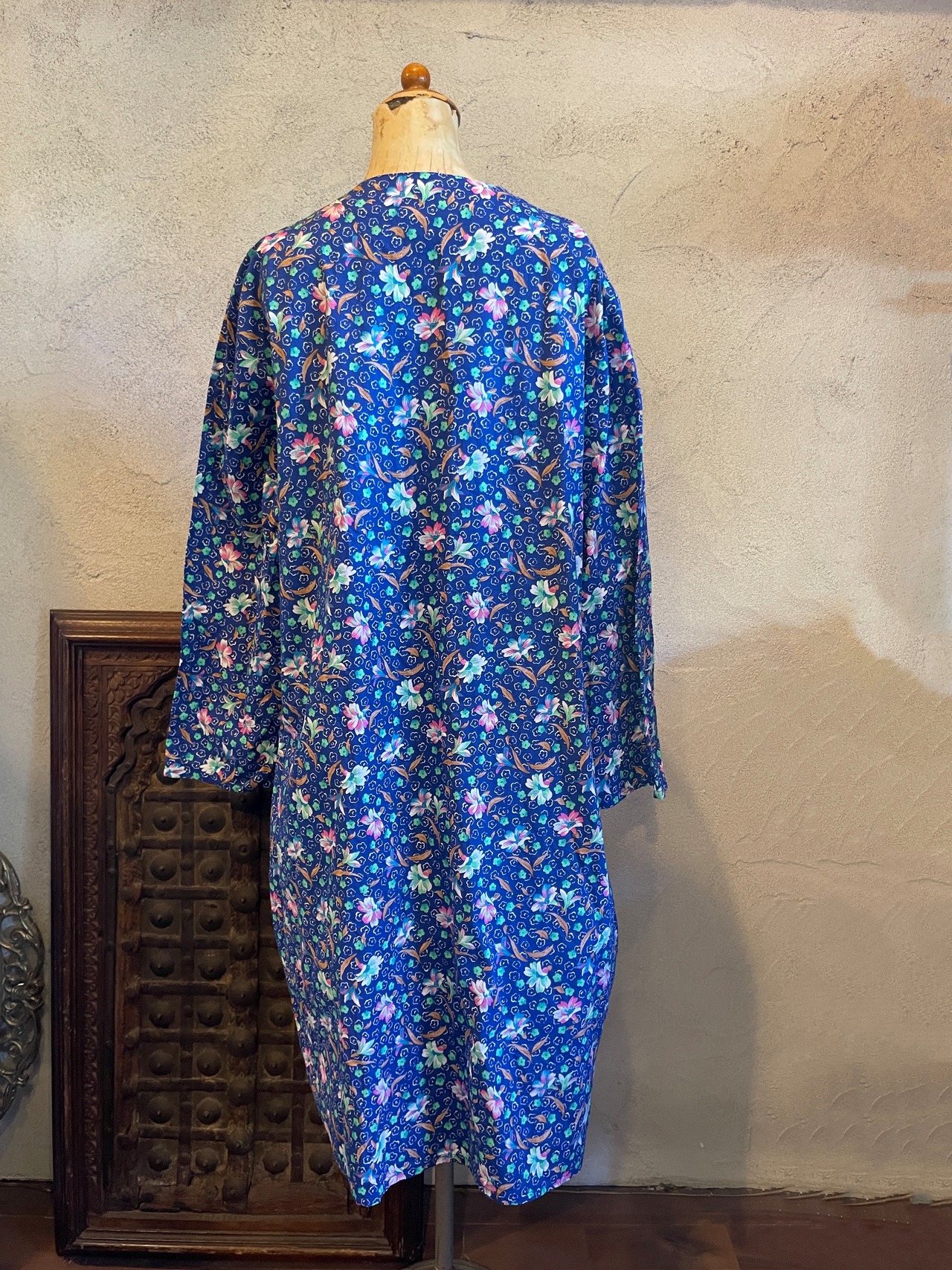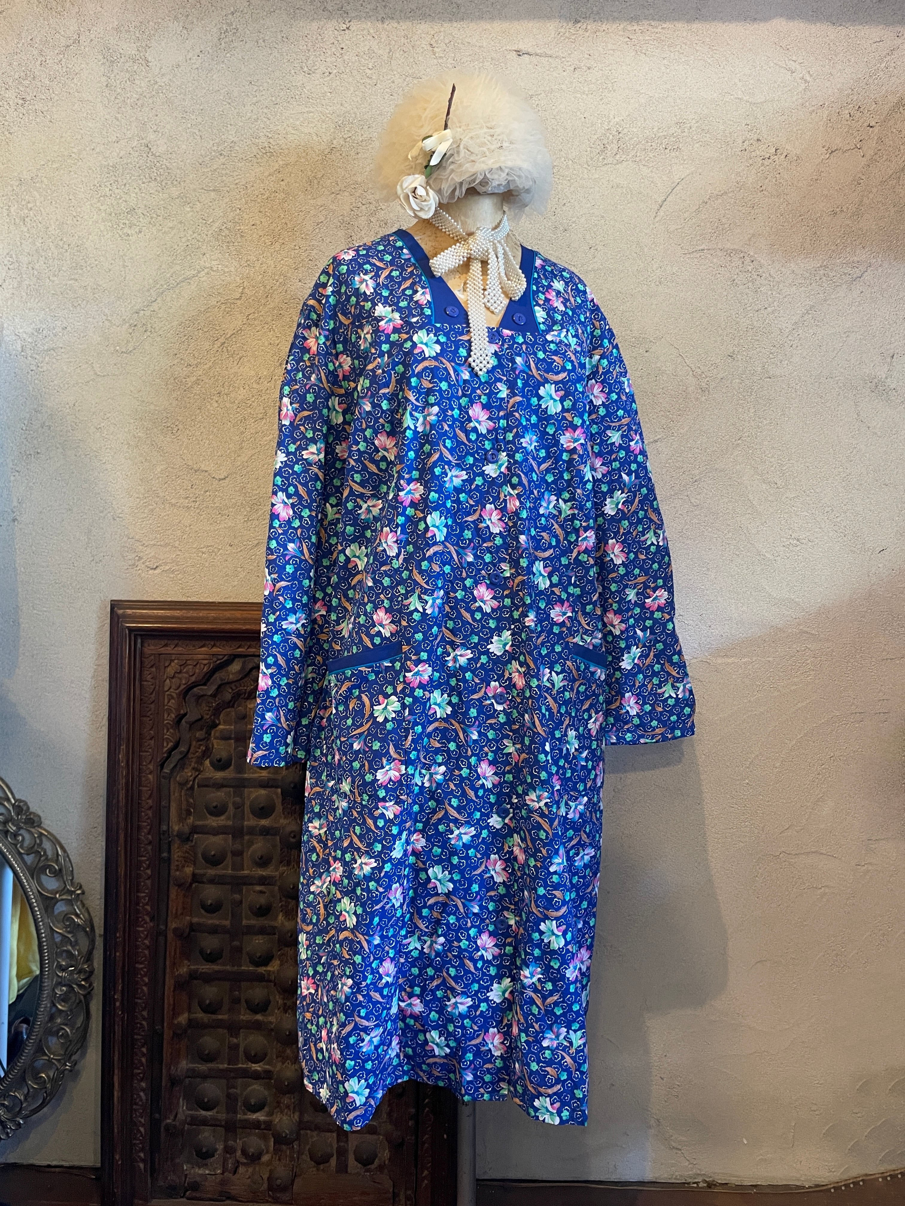 総柄フラワーワンピース コットン ブルー ヴィンテージ 古着