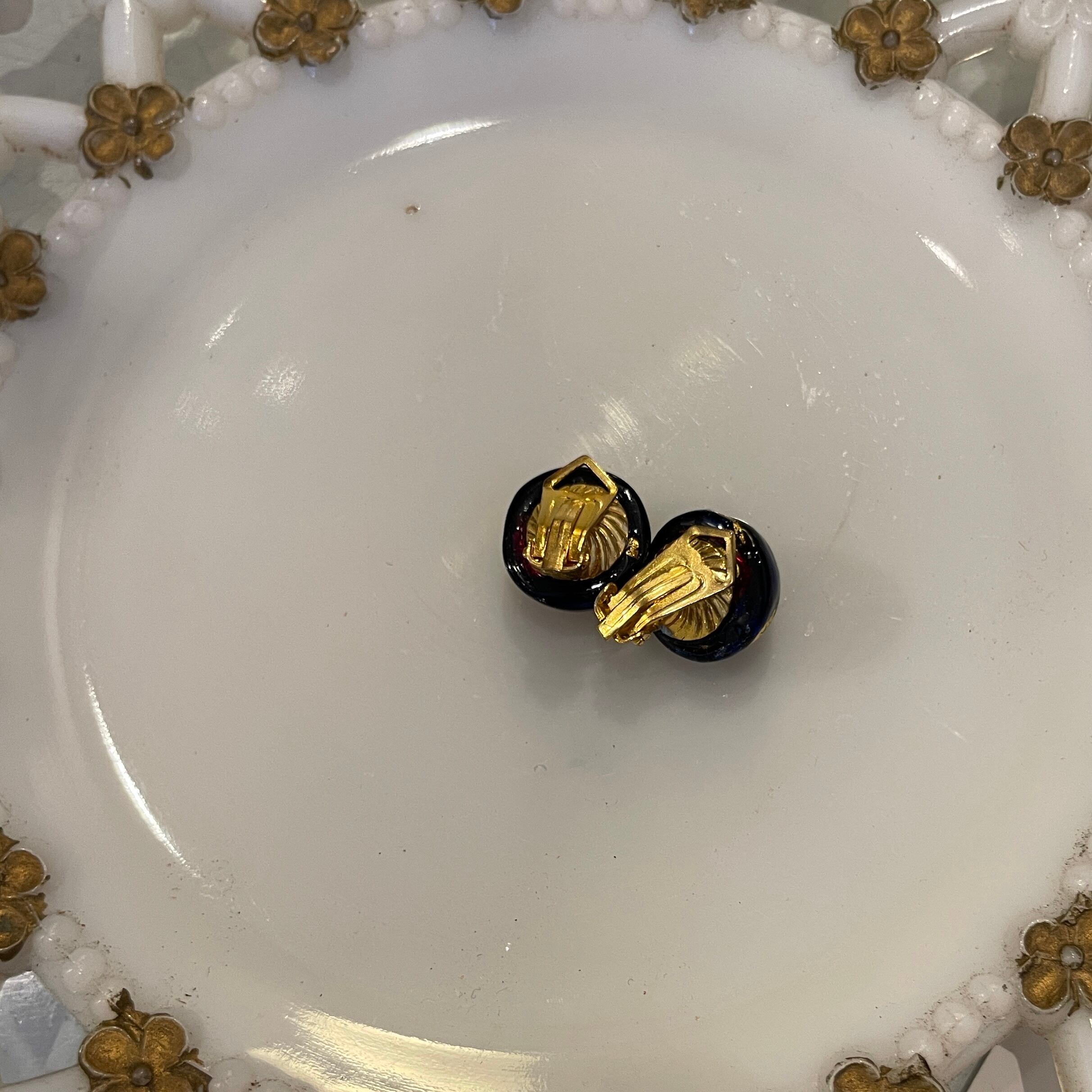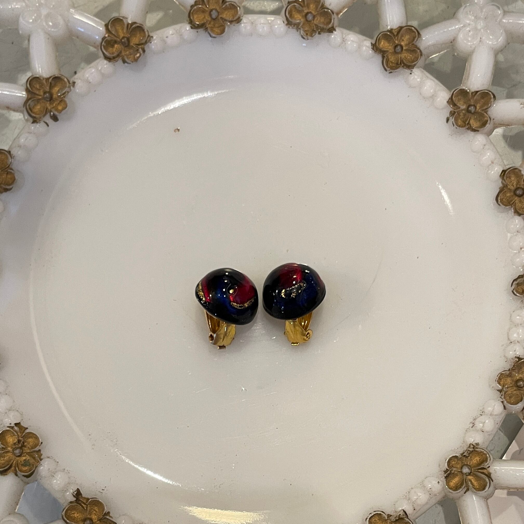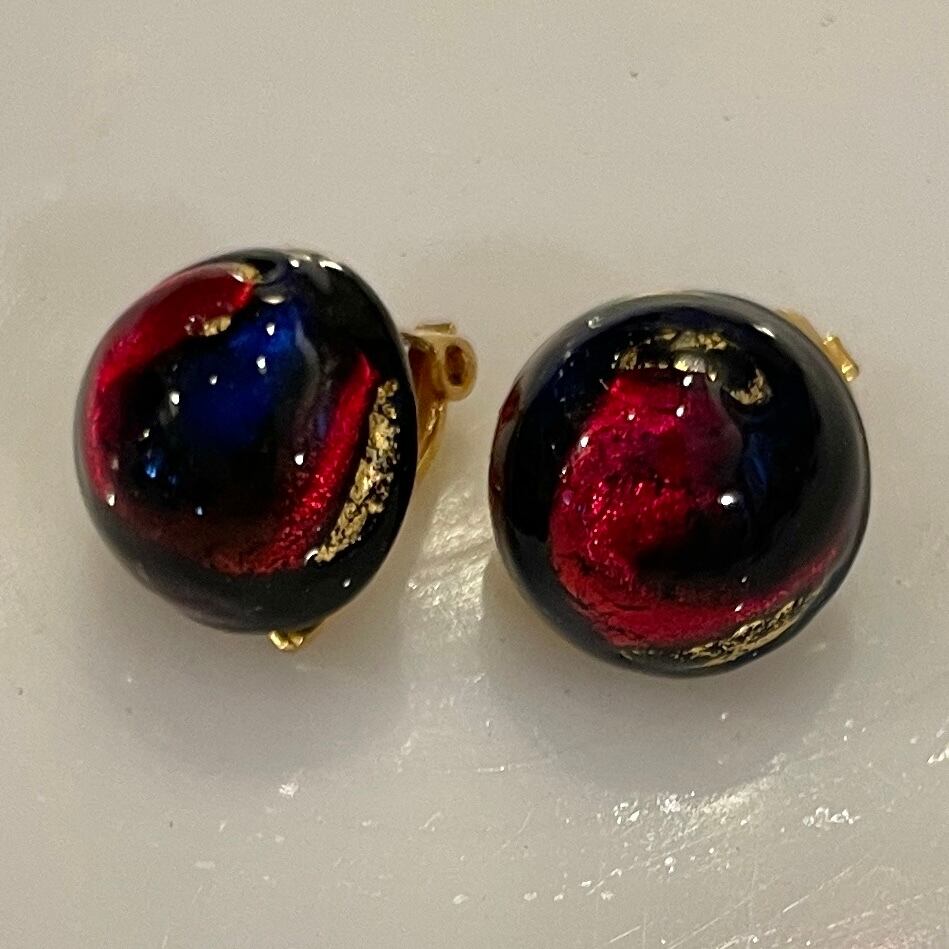 マーブル ガラスビーズ イヤリング ゴールド×レッド×ブルーヴィンテージ アクセサリー