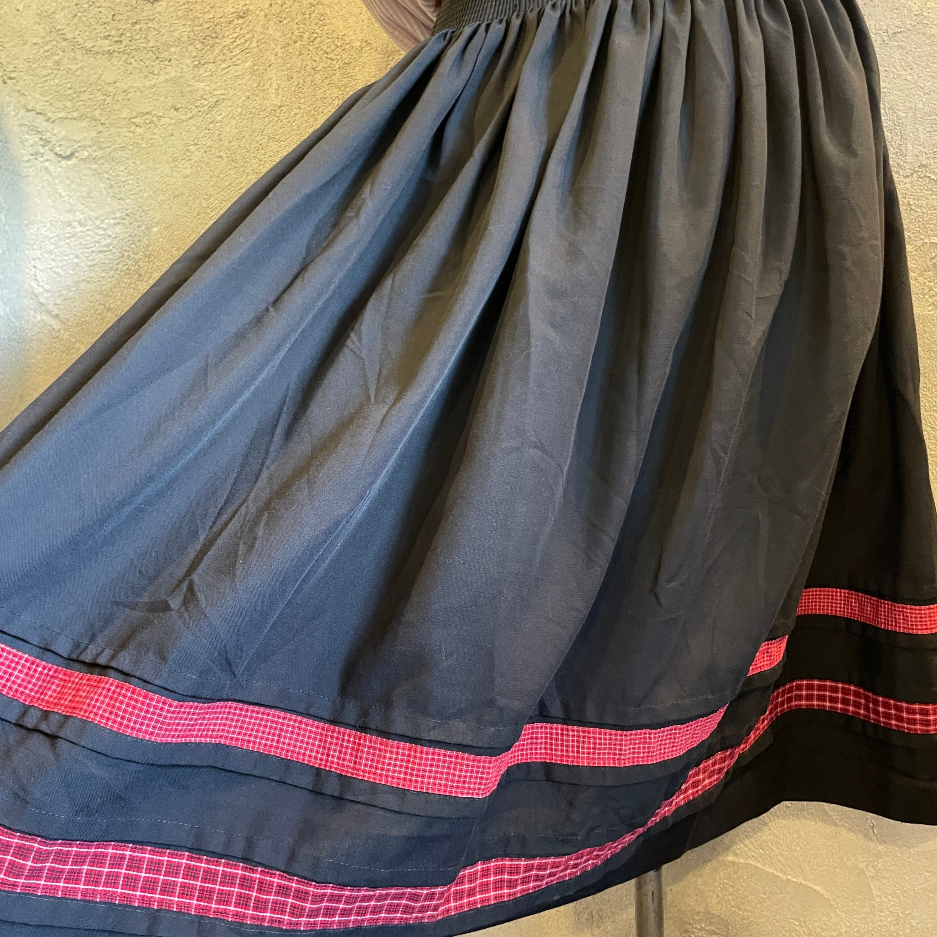 フレアスカート ブラック チェックリボン ヴィンテージ 古着