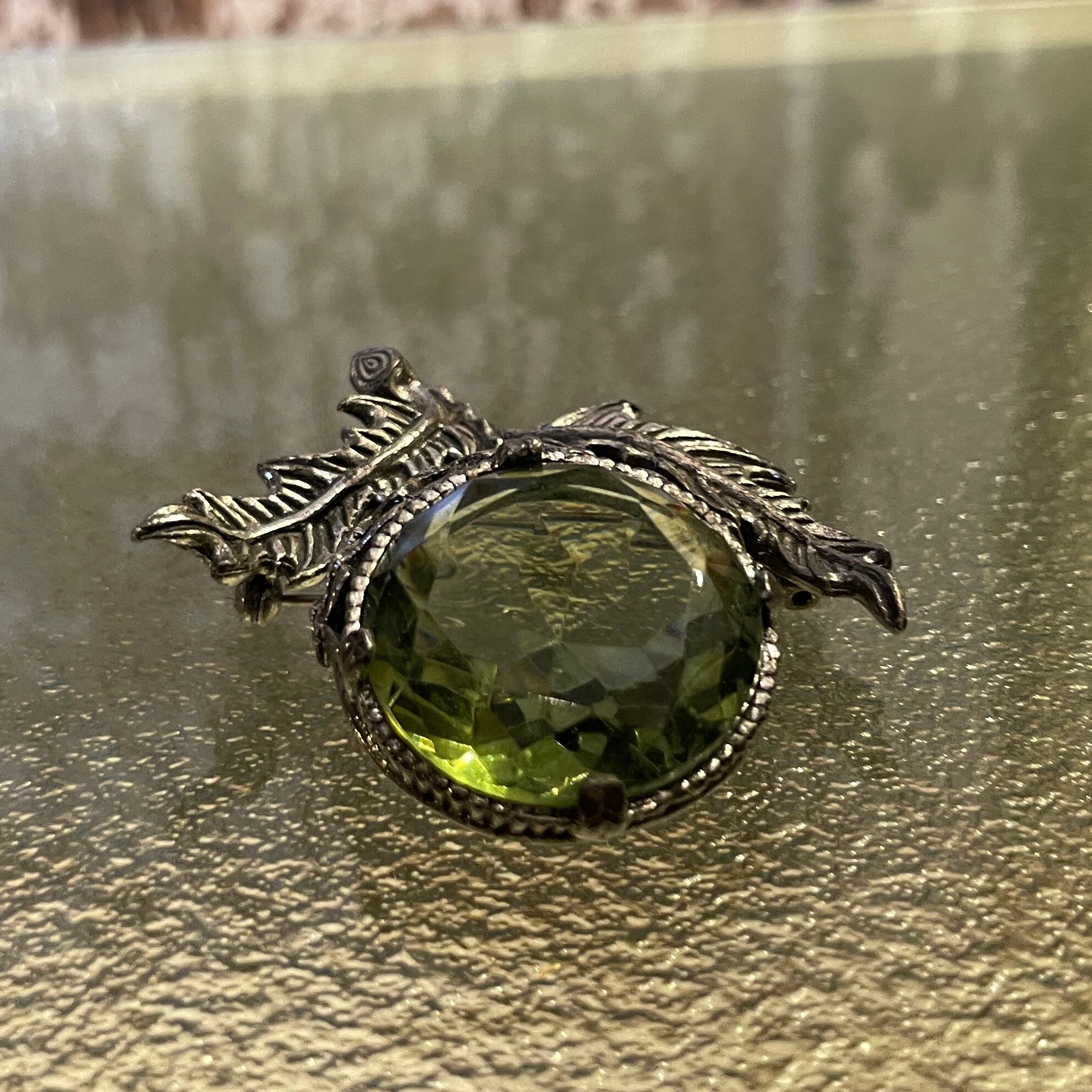 クリアグリーン ボタニカルデザイン ブローチ ヴィンテージ アクセサリー