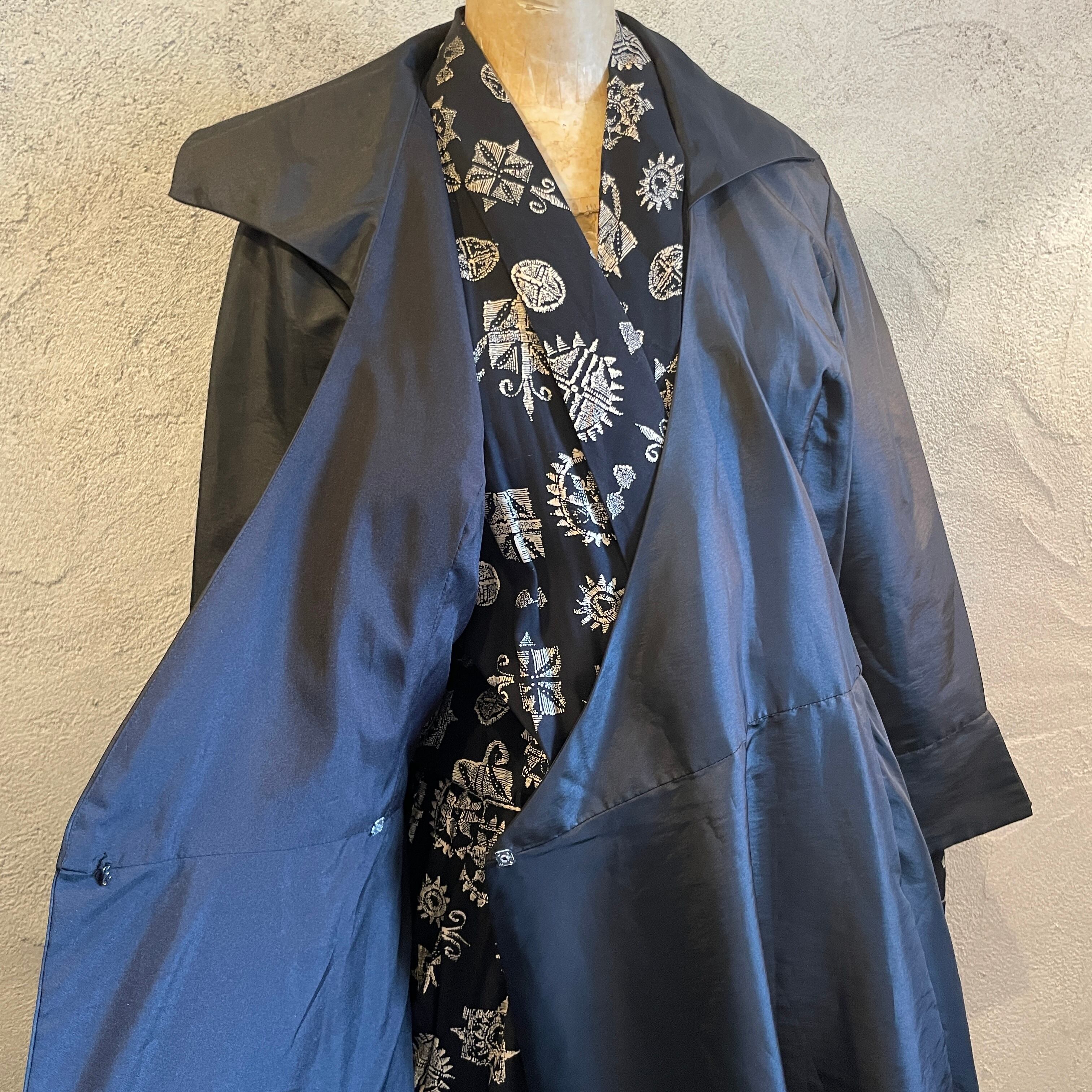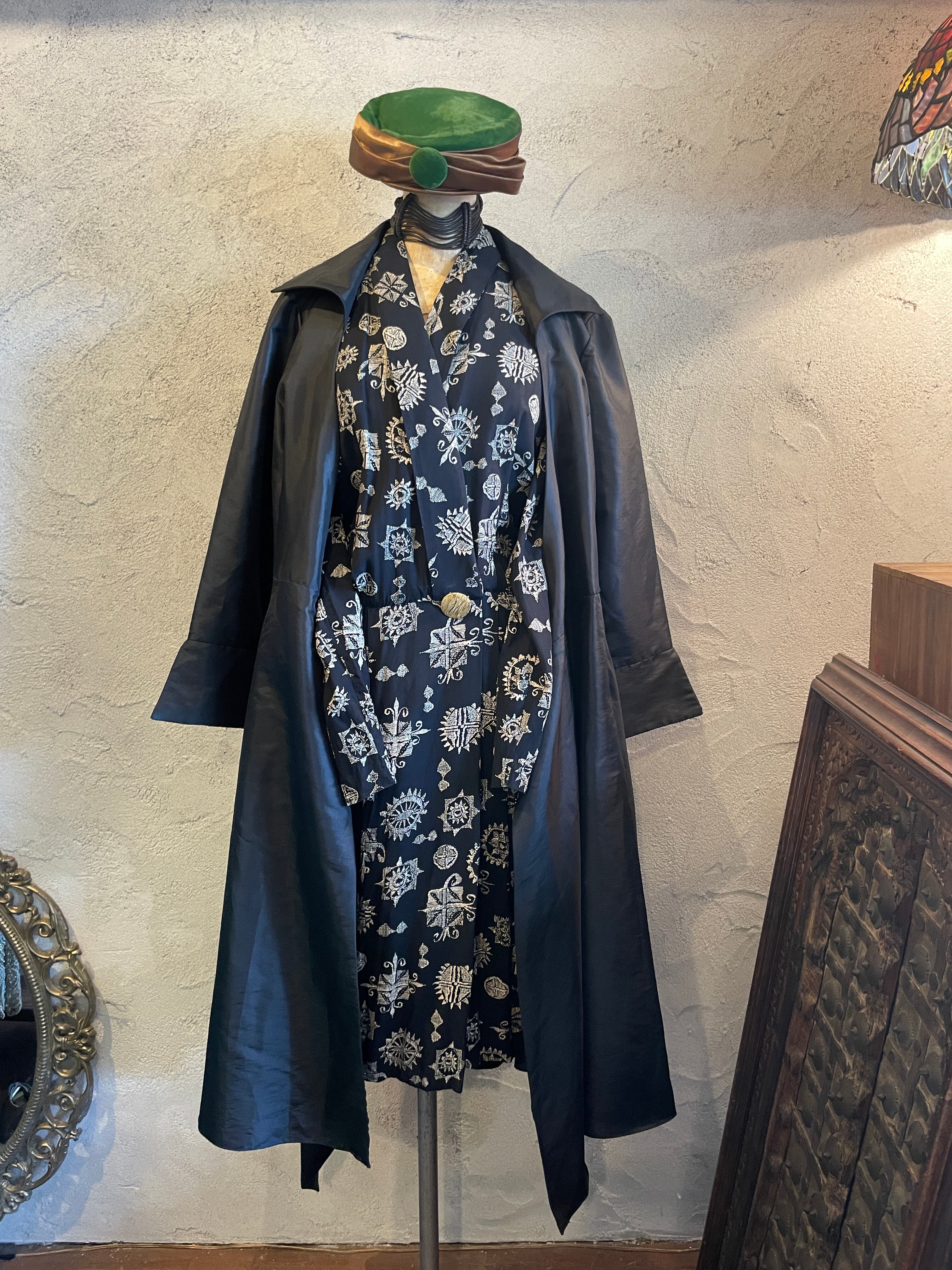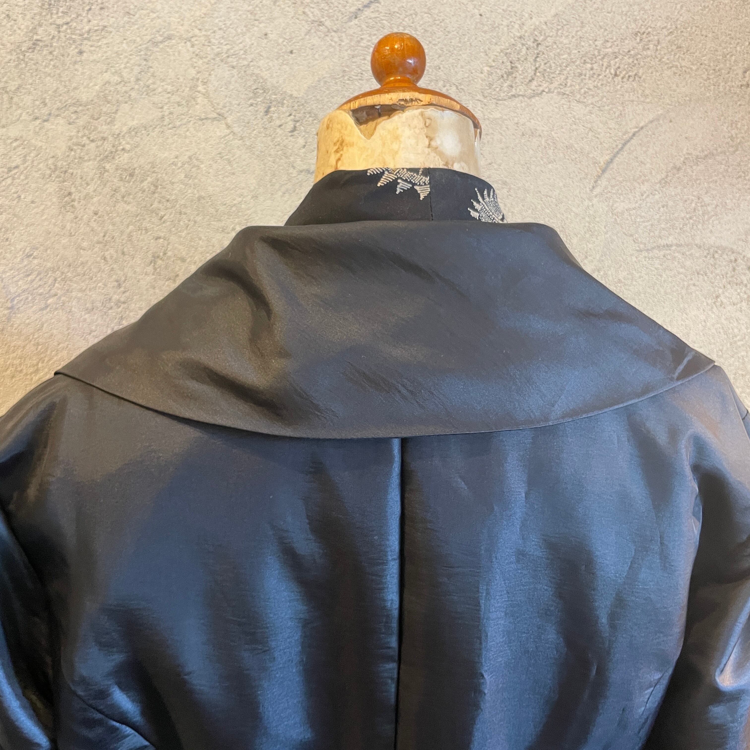 ブラック ナイロンデザインコート アウター リボン ヴィンテージ 古着