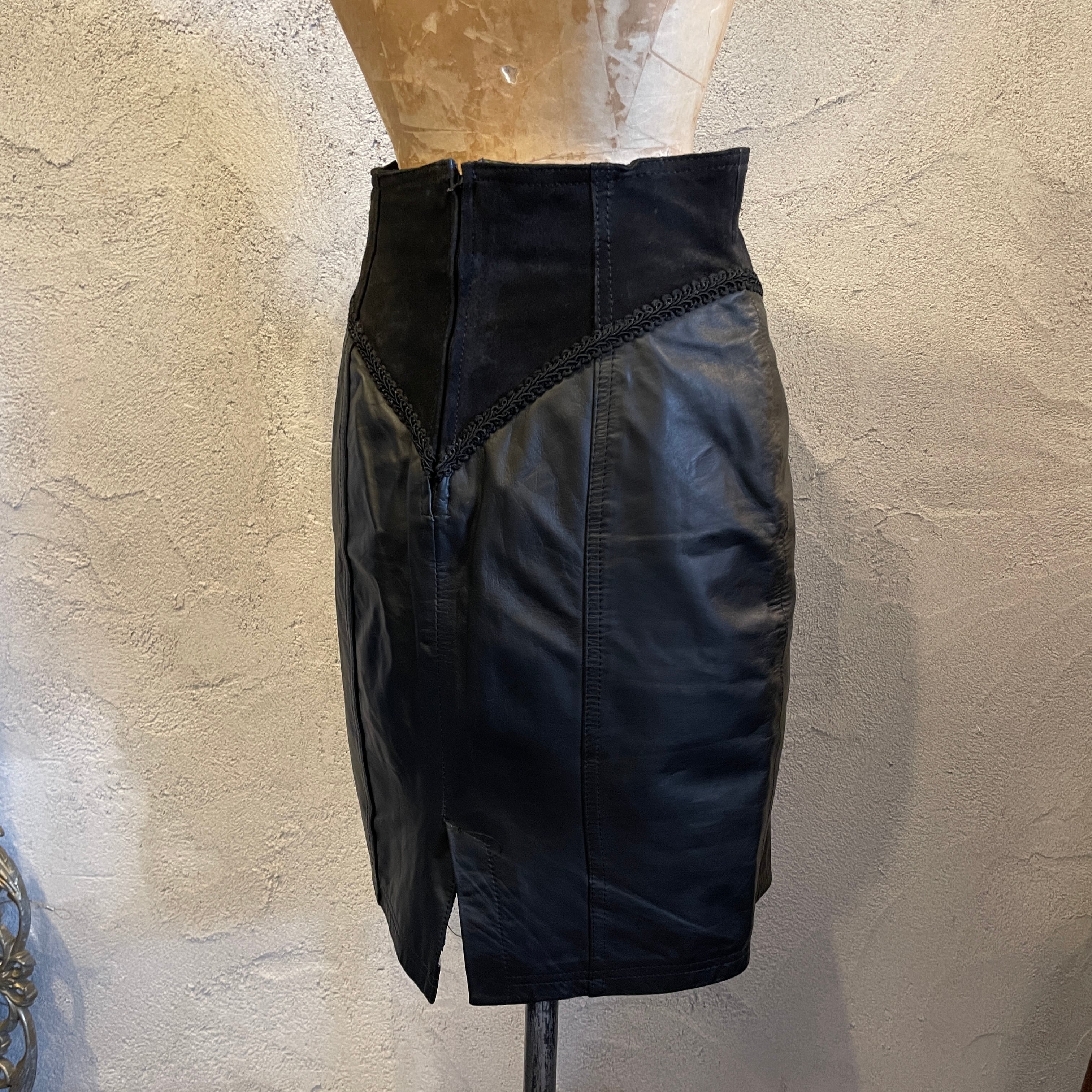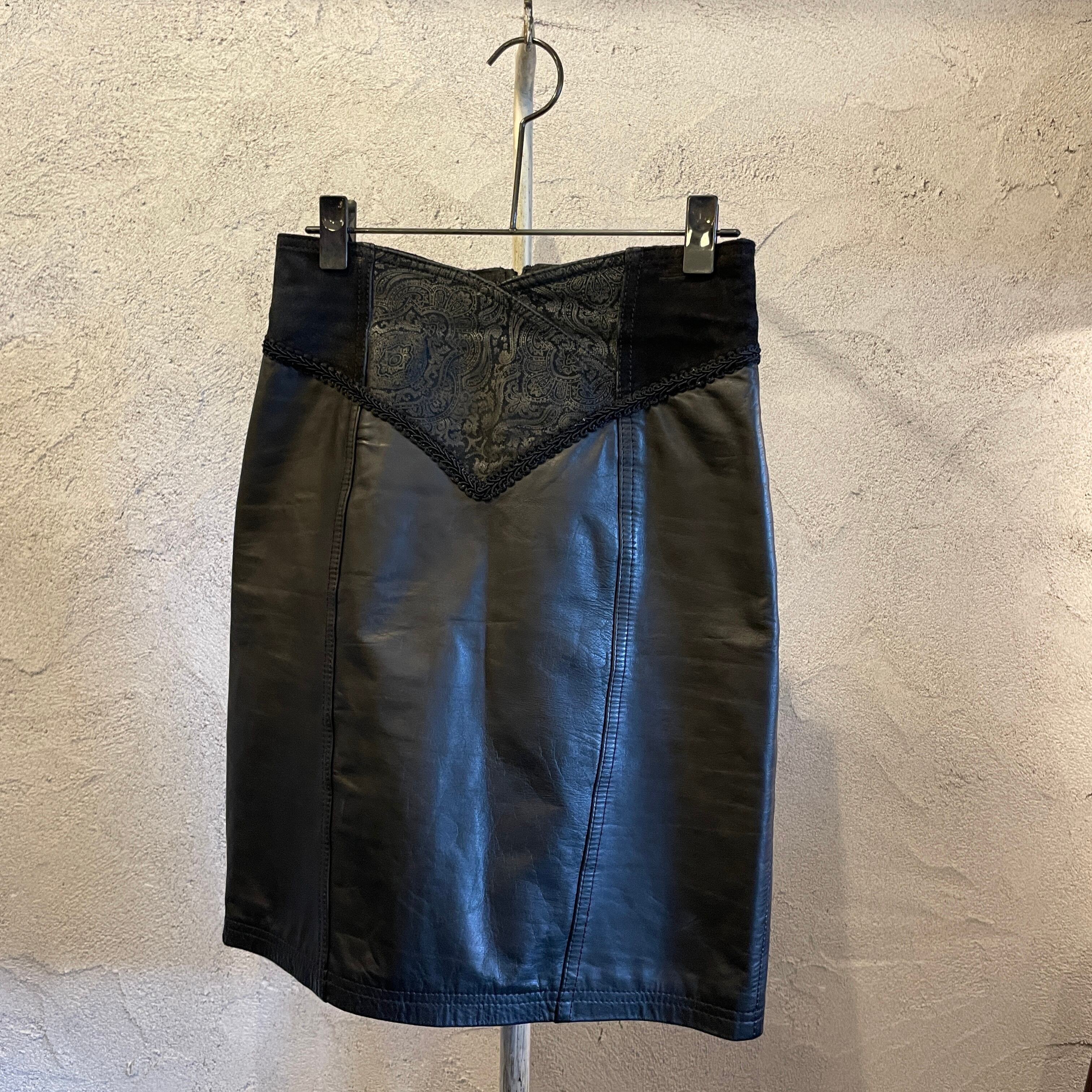ウエストデザイン レザータイトスカート ヴィンテージ 古着