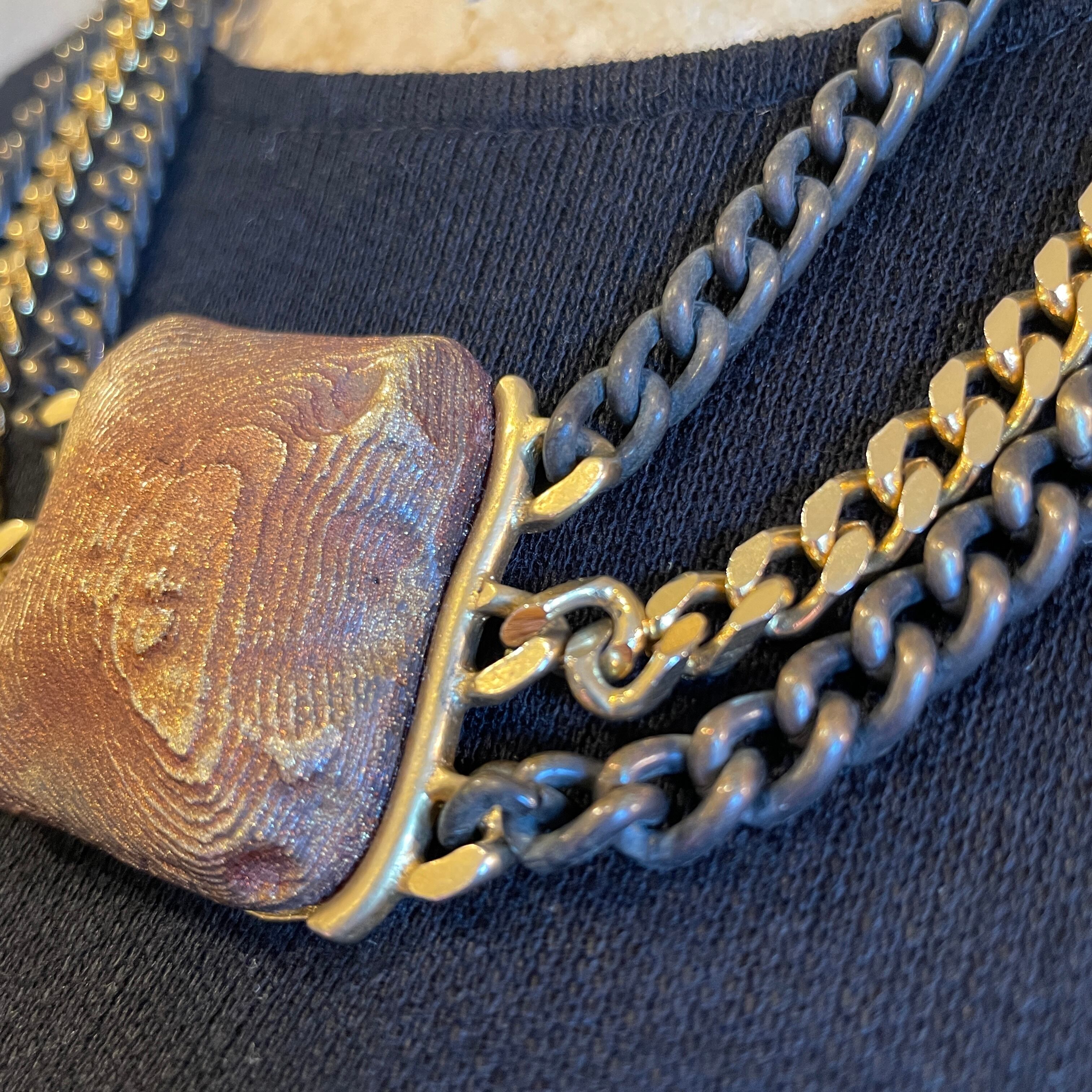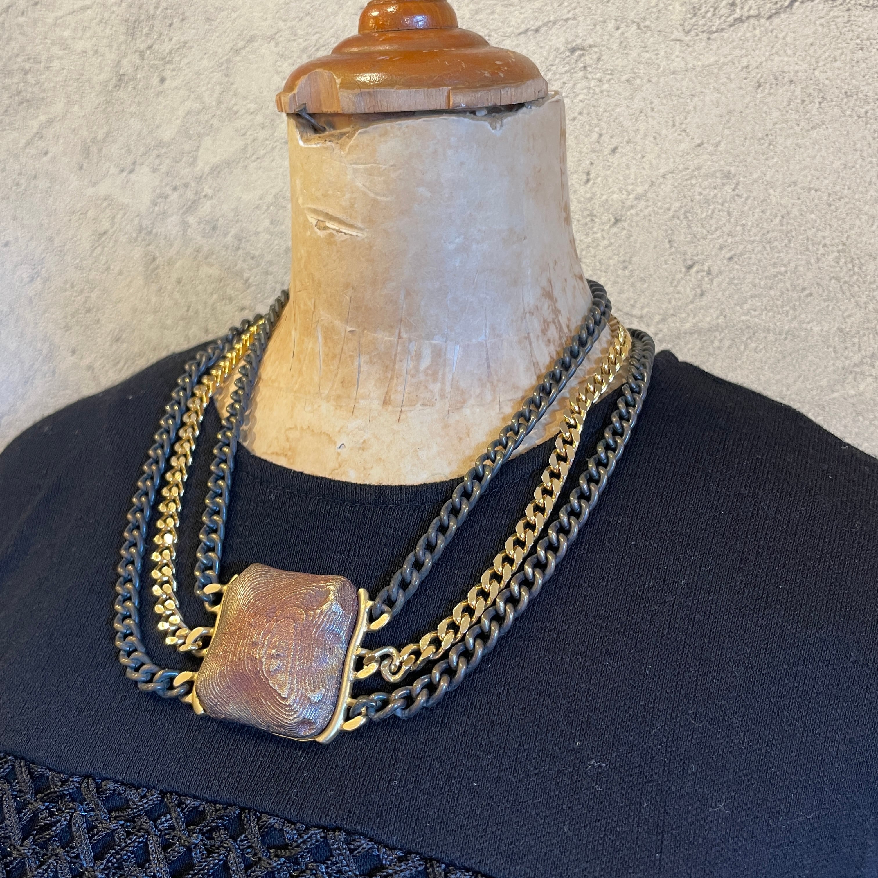 地層モチーフ 3連 メタルチェーン ネックレス ヴィンテージ アクセサリー