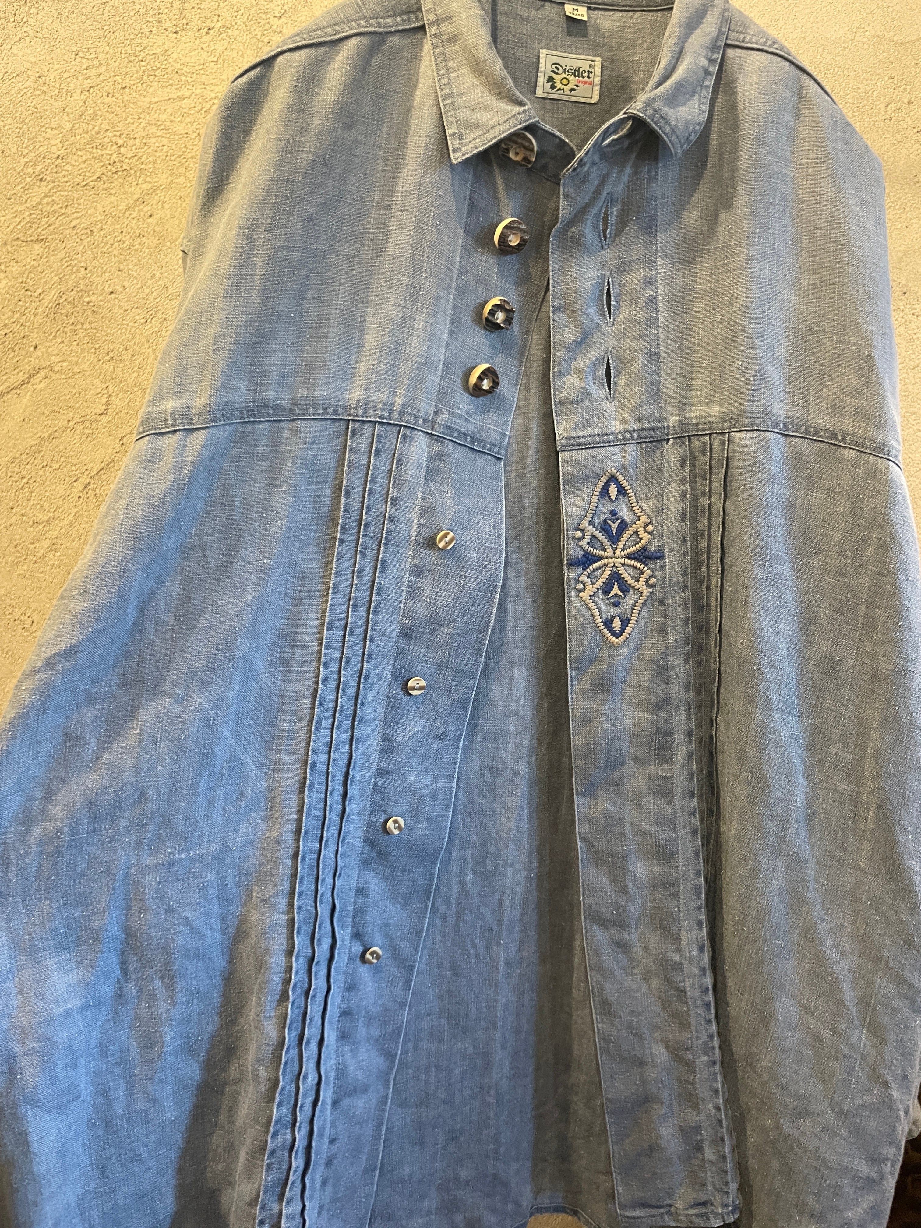 リネンチロルシャツ 刺繍 プリーツ ヴィンテージ 古着