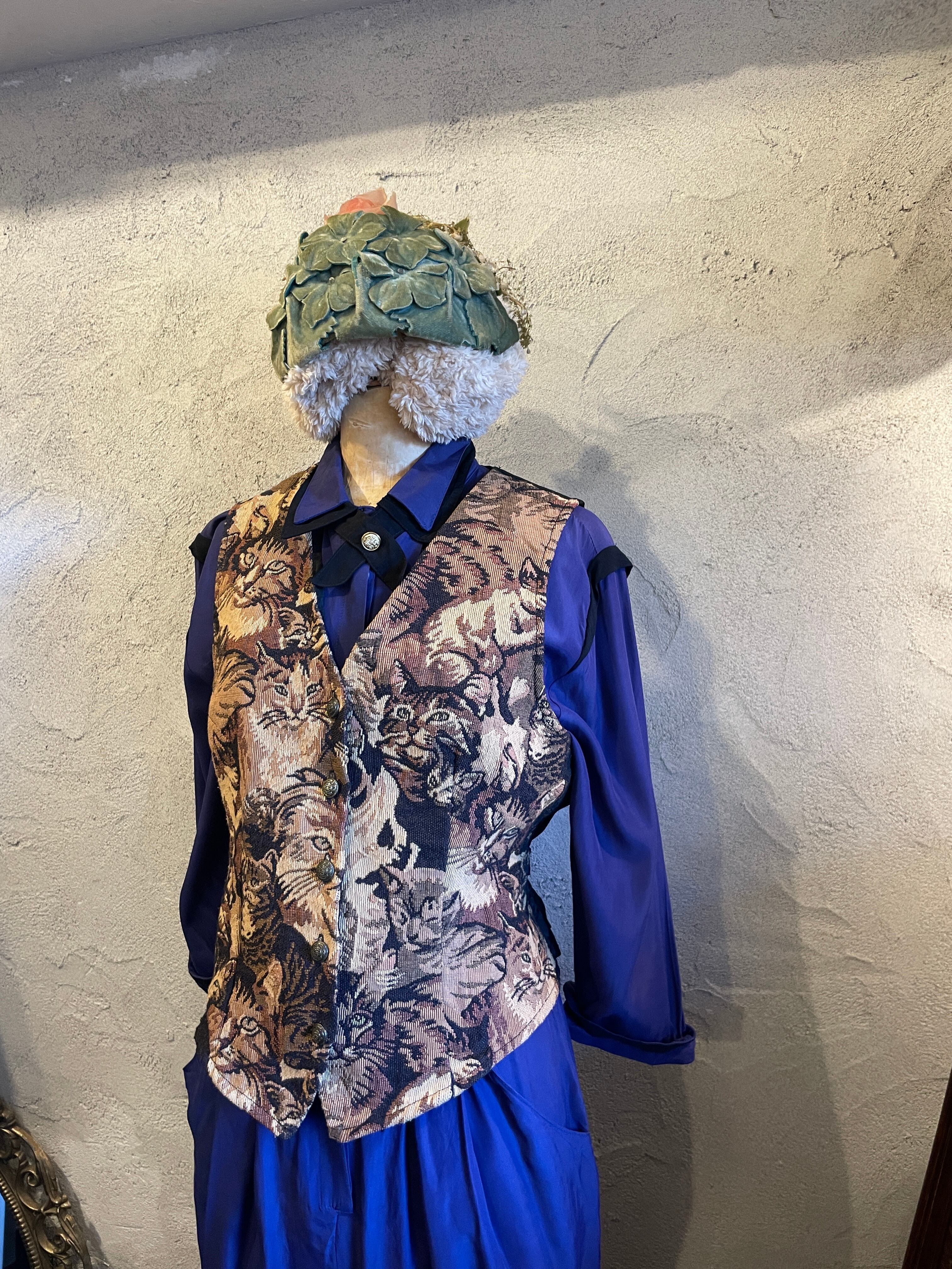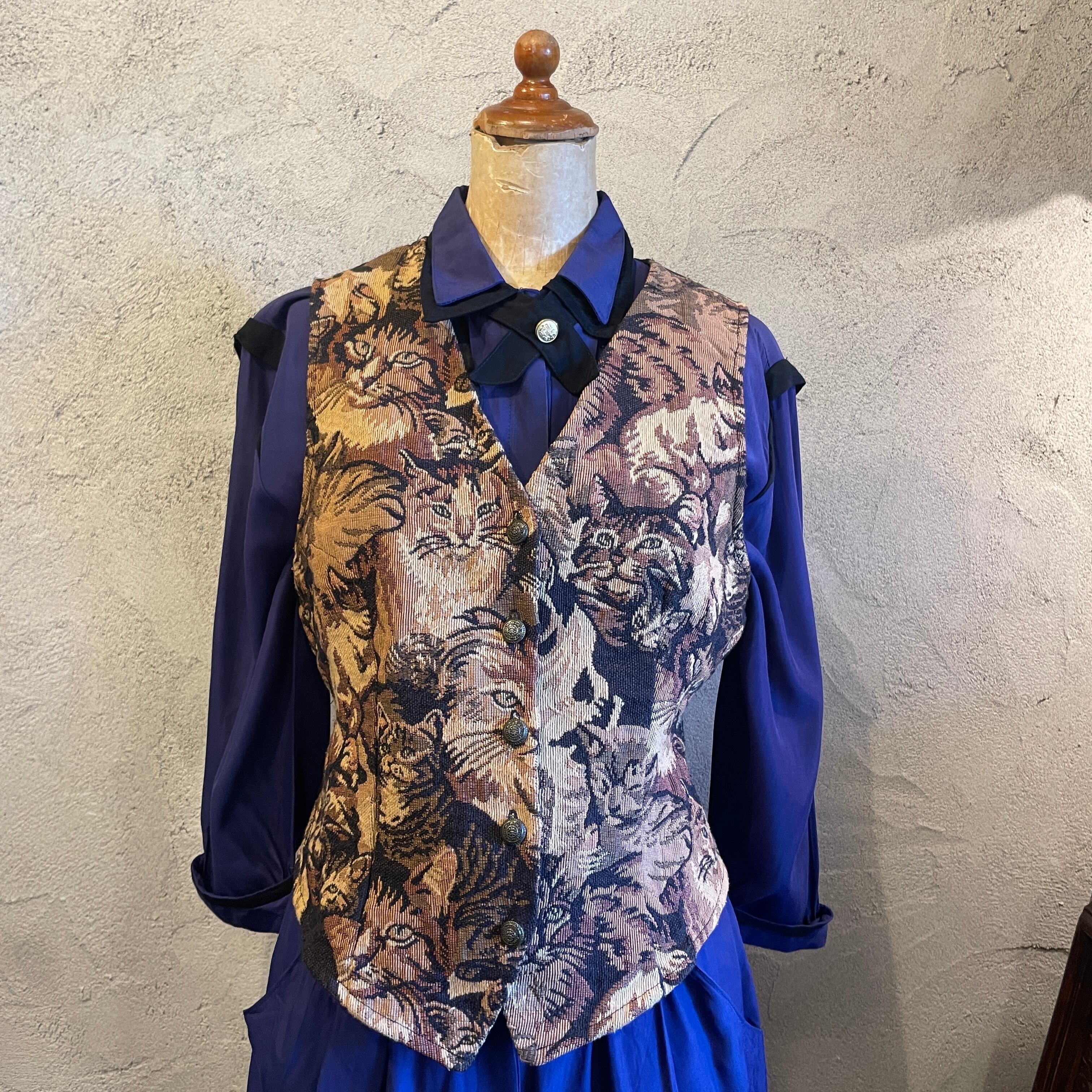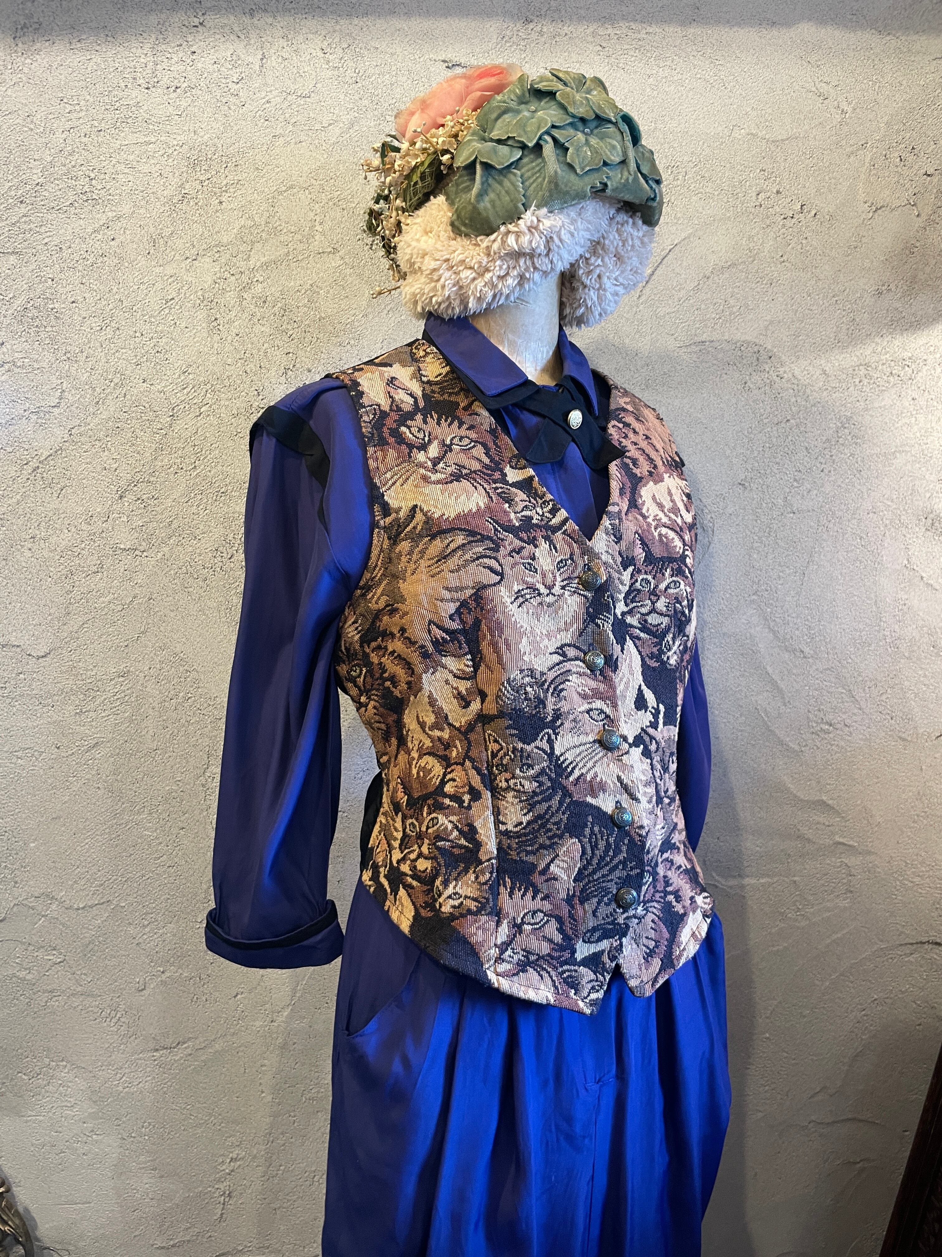 猫ベスト ゴブラン織 ネコ キャット ヴィンテージ 古着
