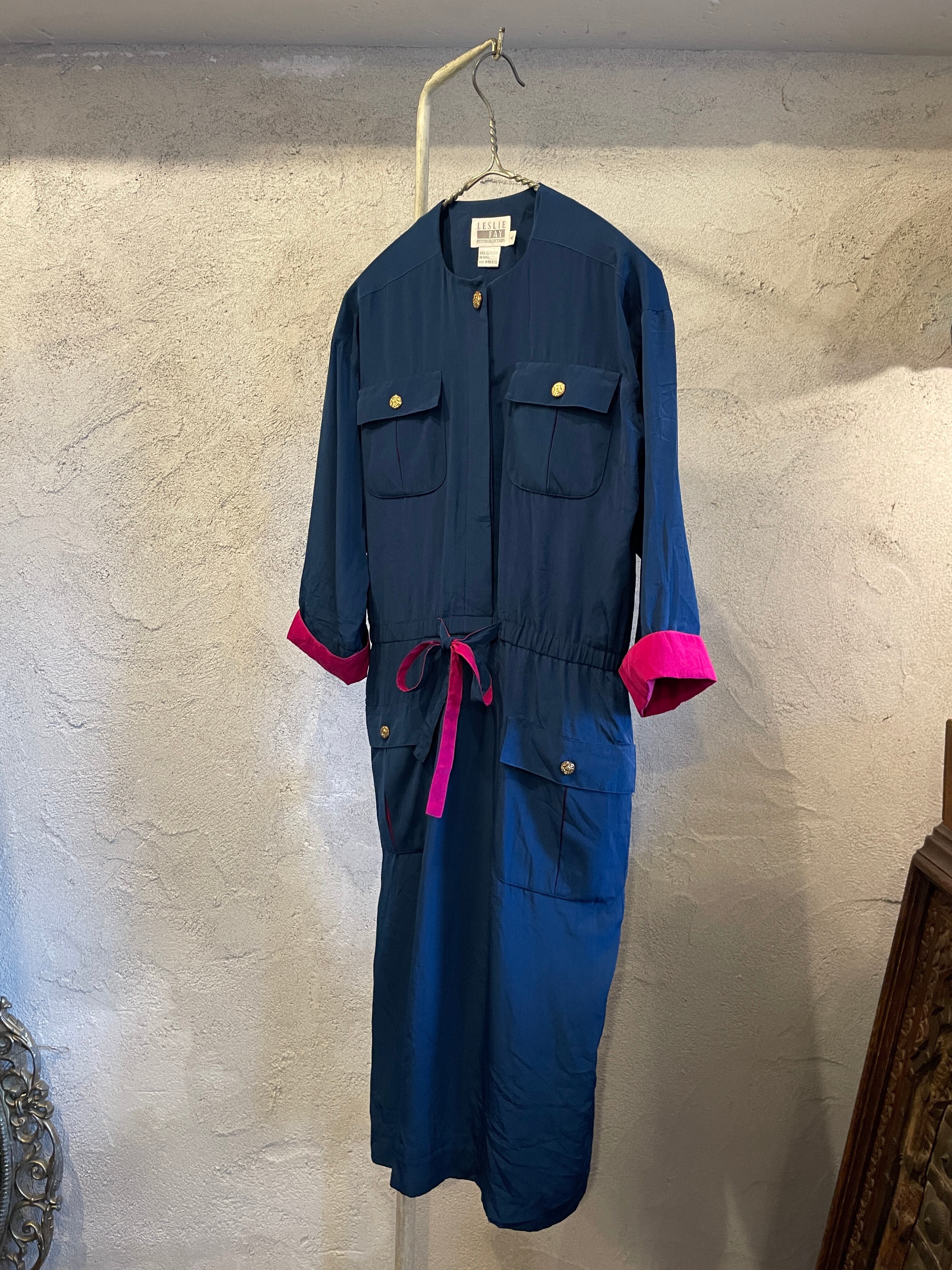 ピンク×ブルー デザインワンピース ヴィンテージ 古着