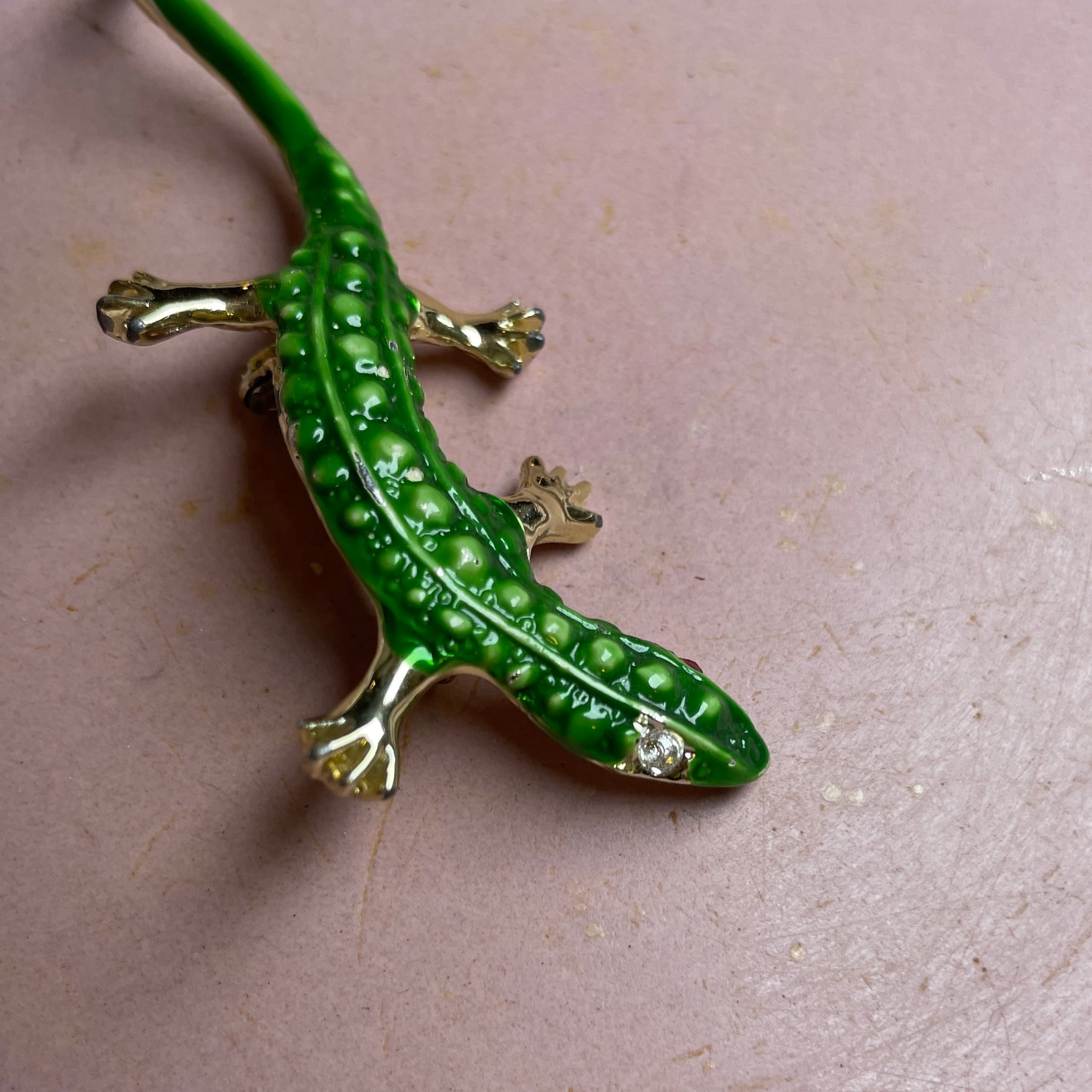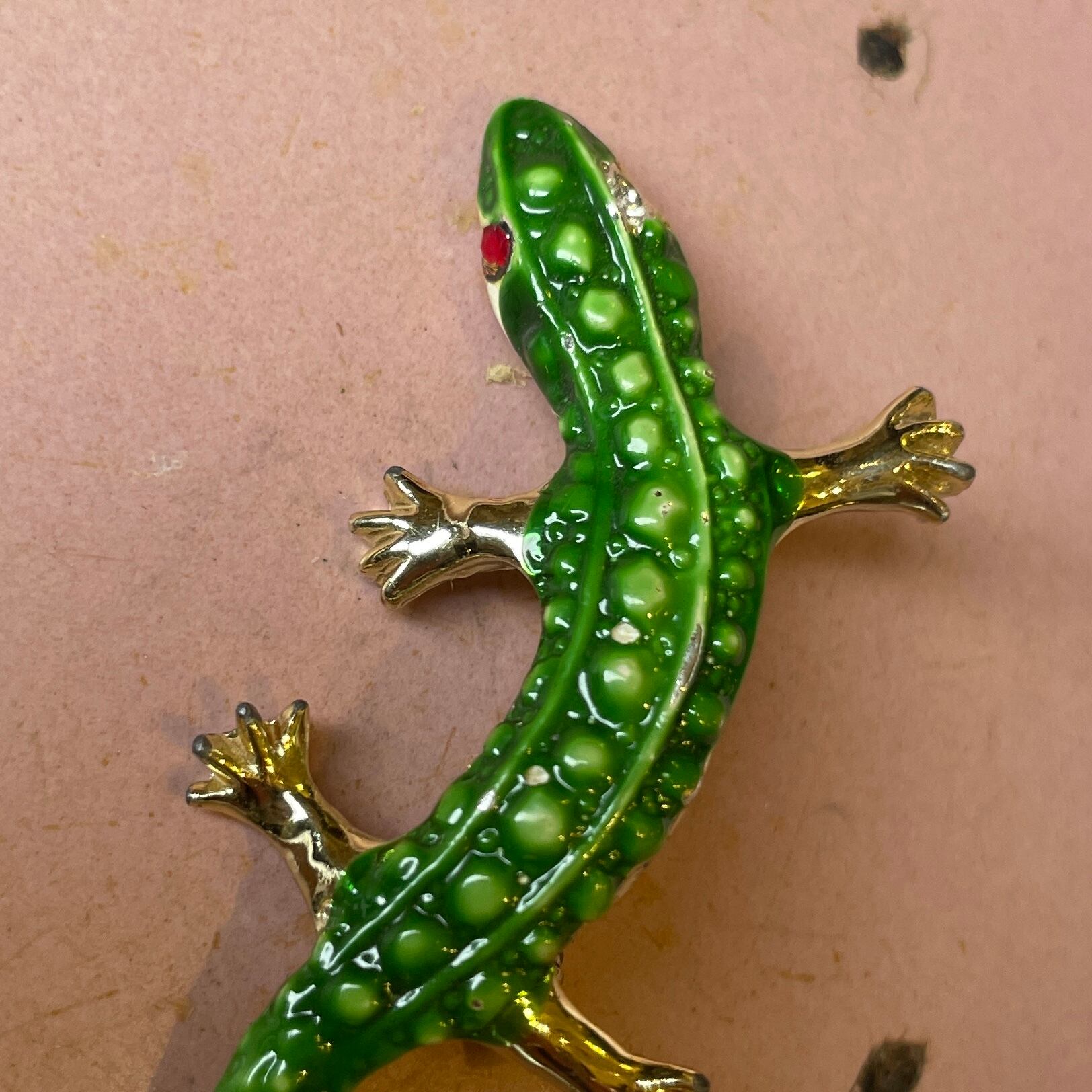 トカゲ ブローチ グリーン ヴィンテージ アクセサリー