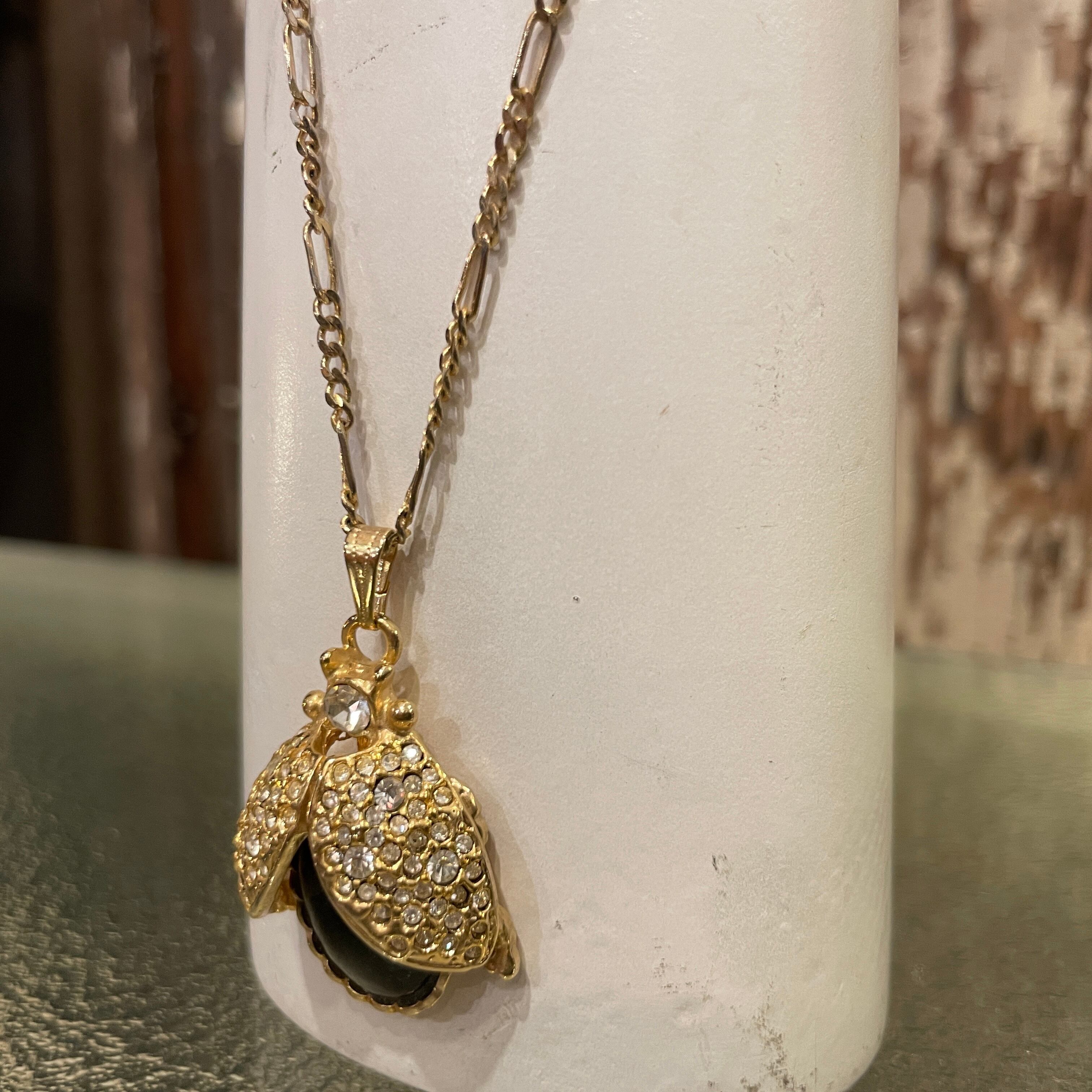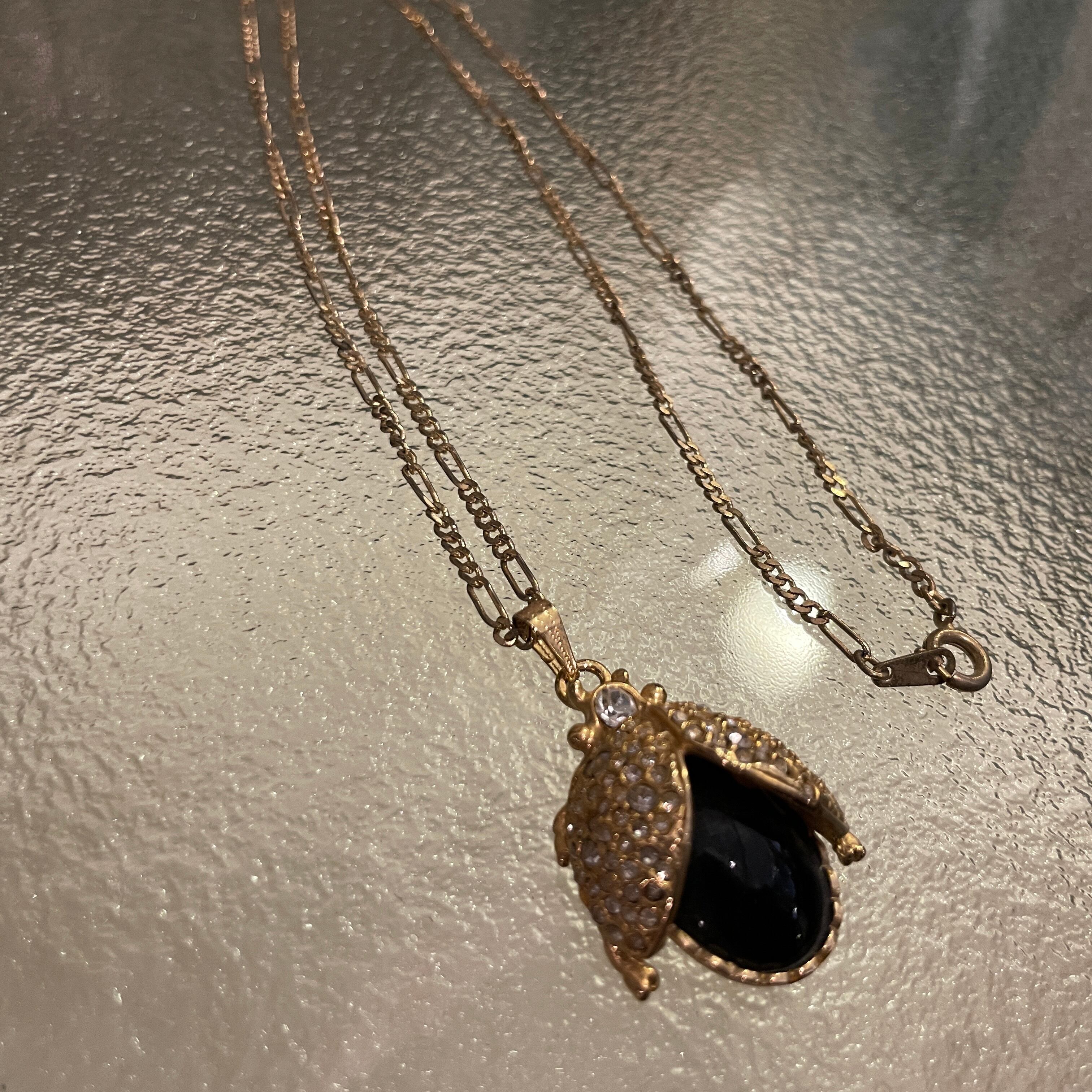 てんとう虫 ラインストーン チェーンネックレス ヴィンテージ アクセサリー