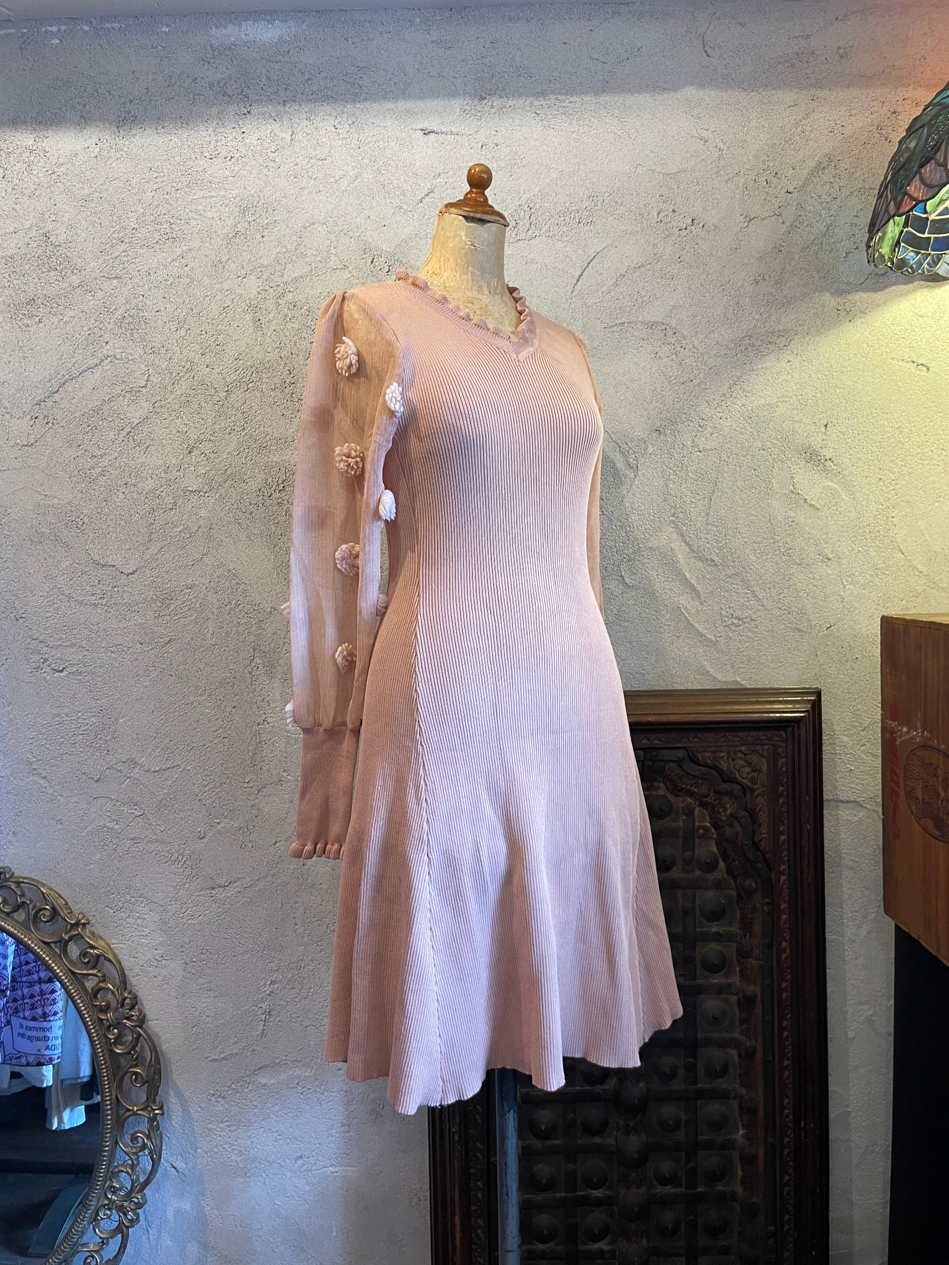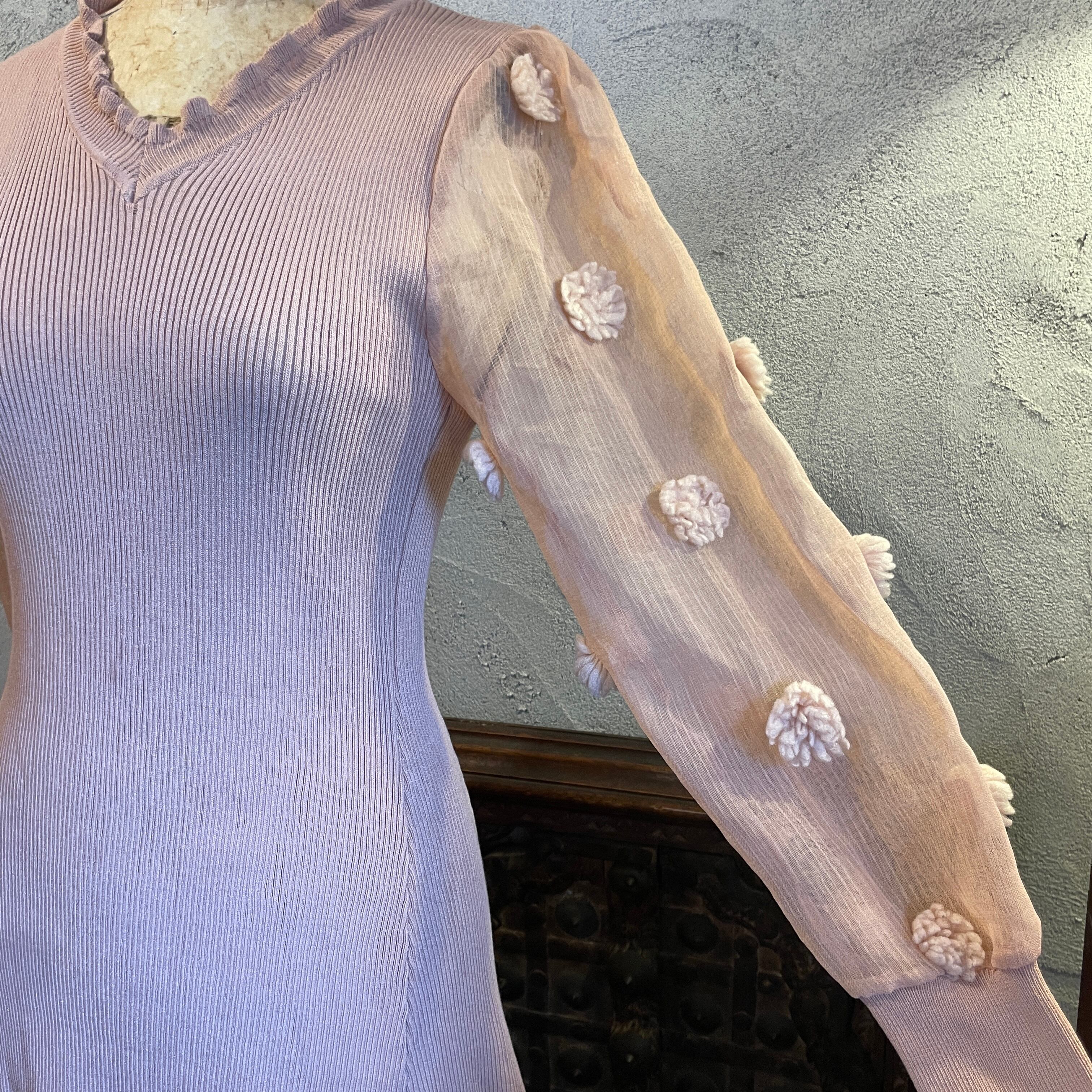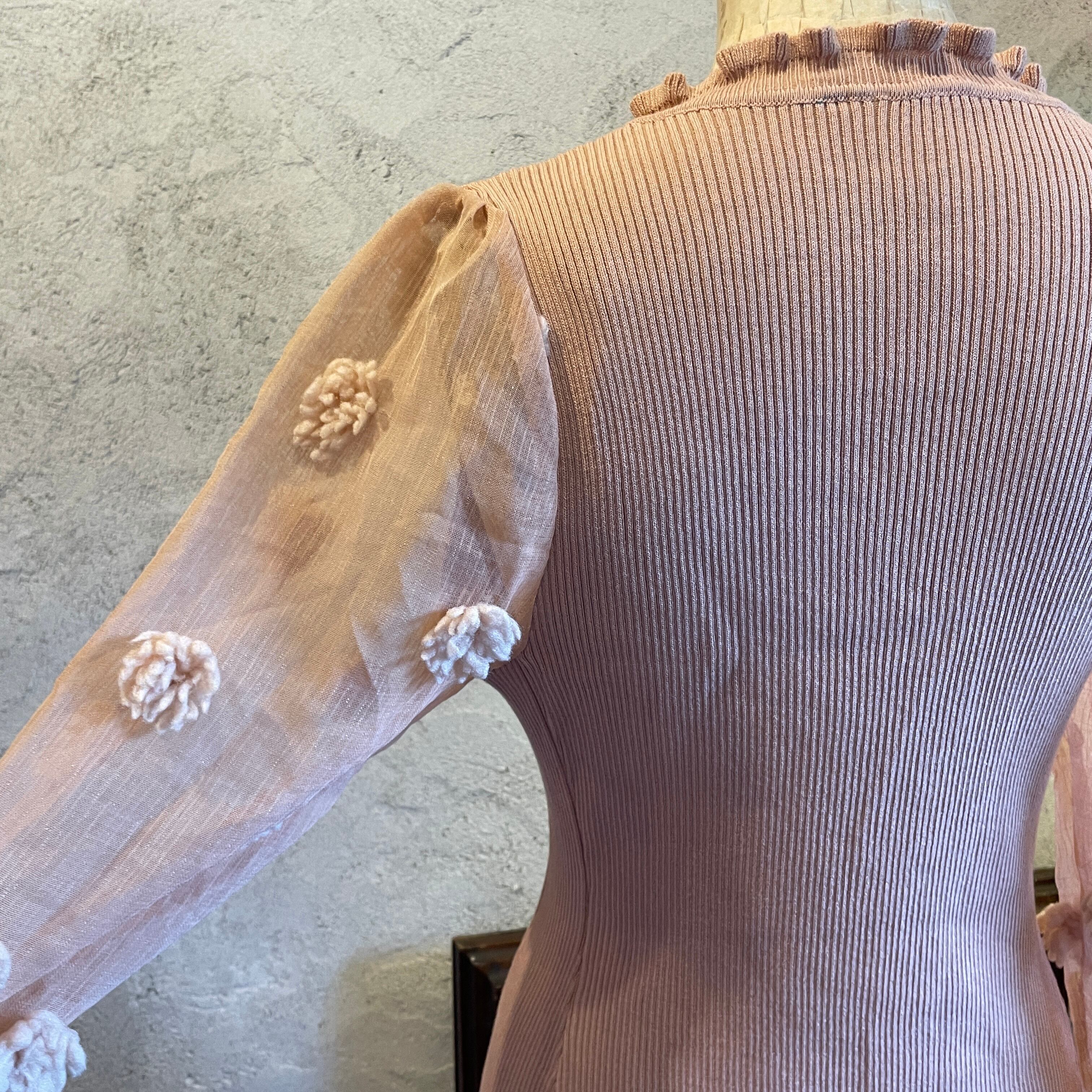 シアーフラワースリーブ ドレス ワンピース ヴィンテージ 古着