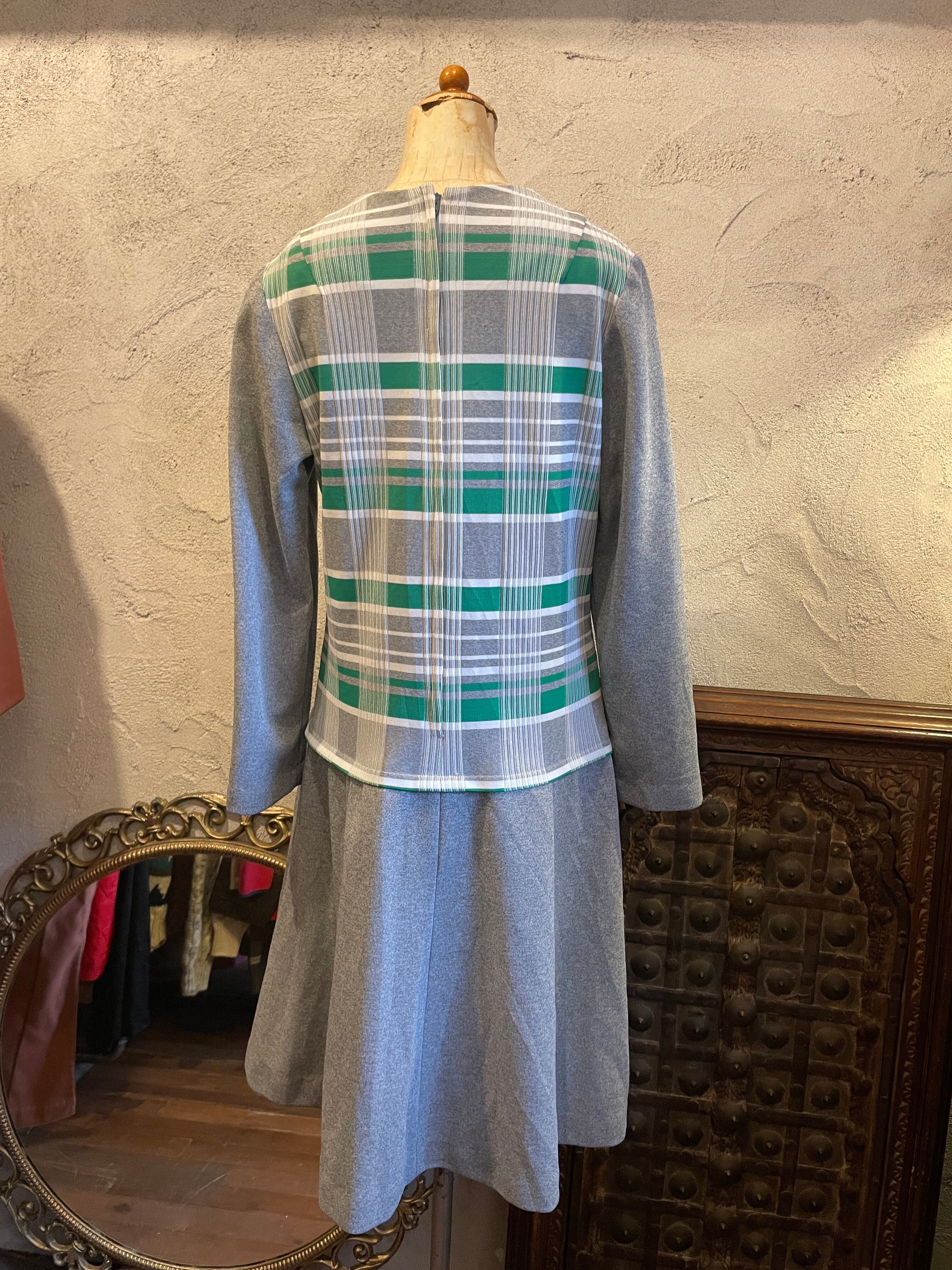 グリーン×グレー チェックワンピース ヴィンテージ 古着