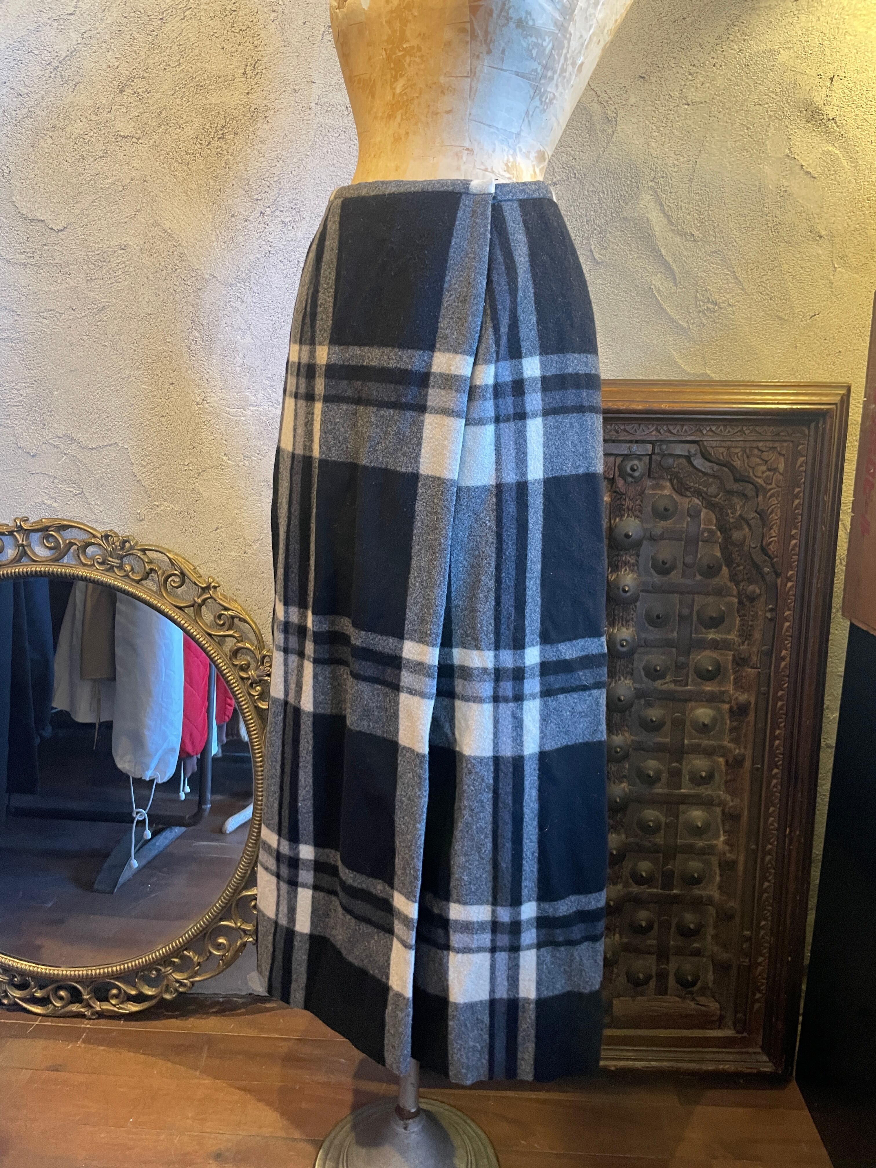 ブラック+ホワイト チェック ロングラップスカート ヴィンテージ 古着