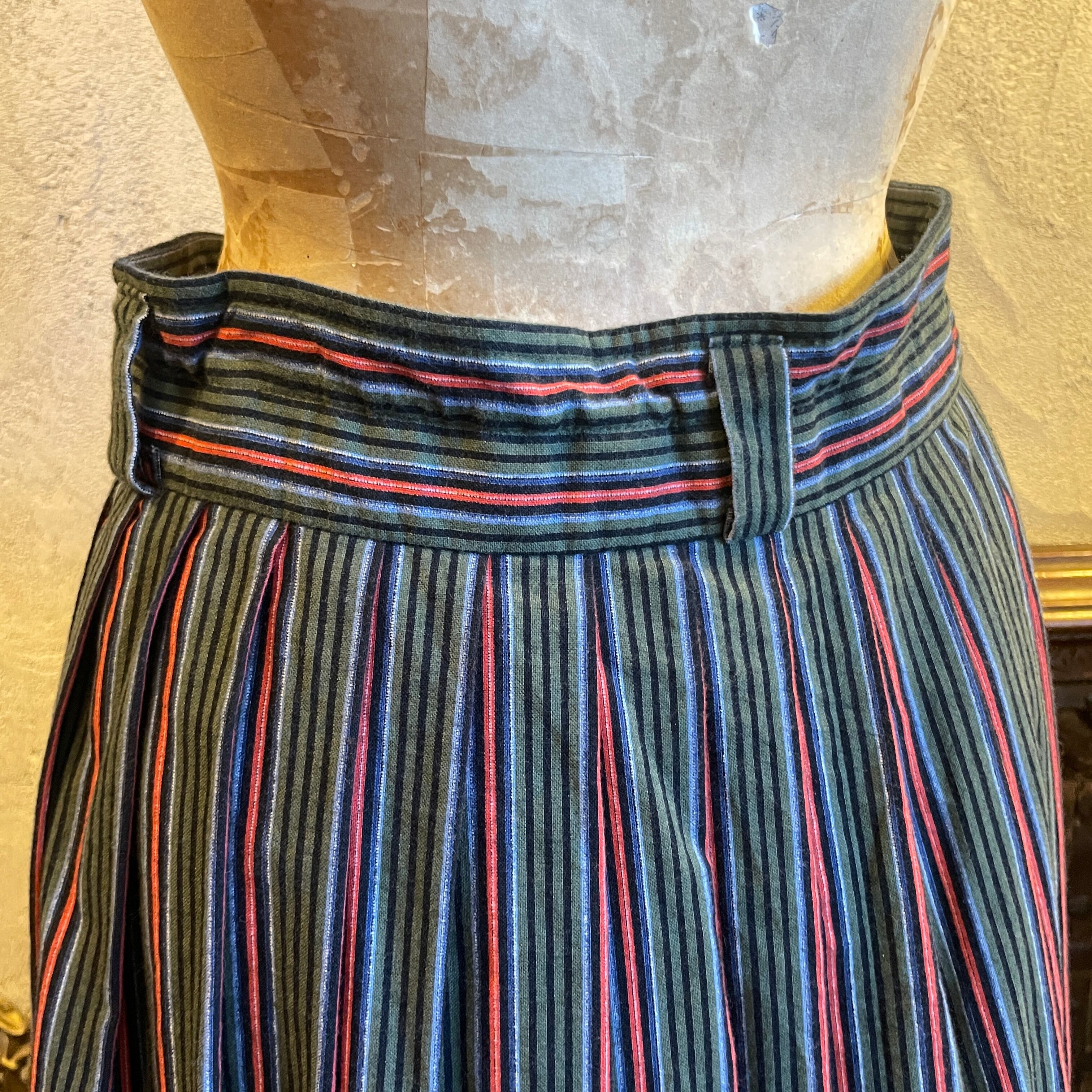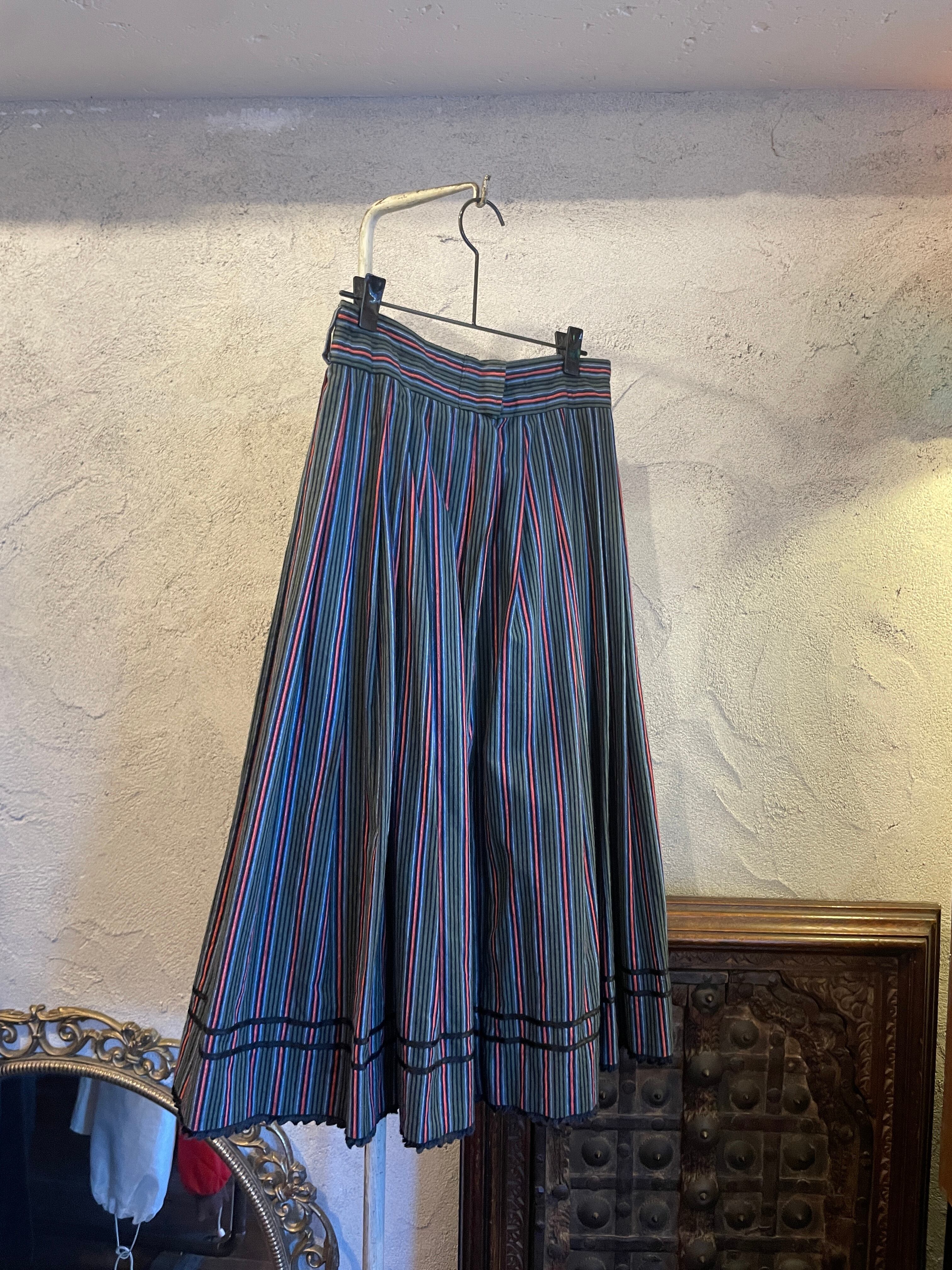 マルチカラー ストライプ フレアスカート 裾レース ヴィンテージ 古着