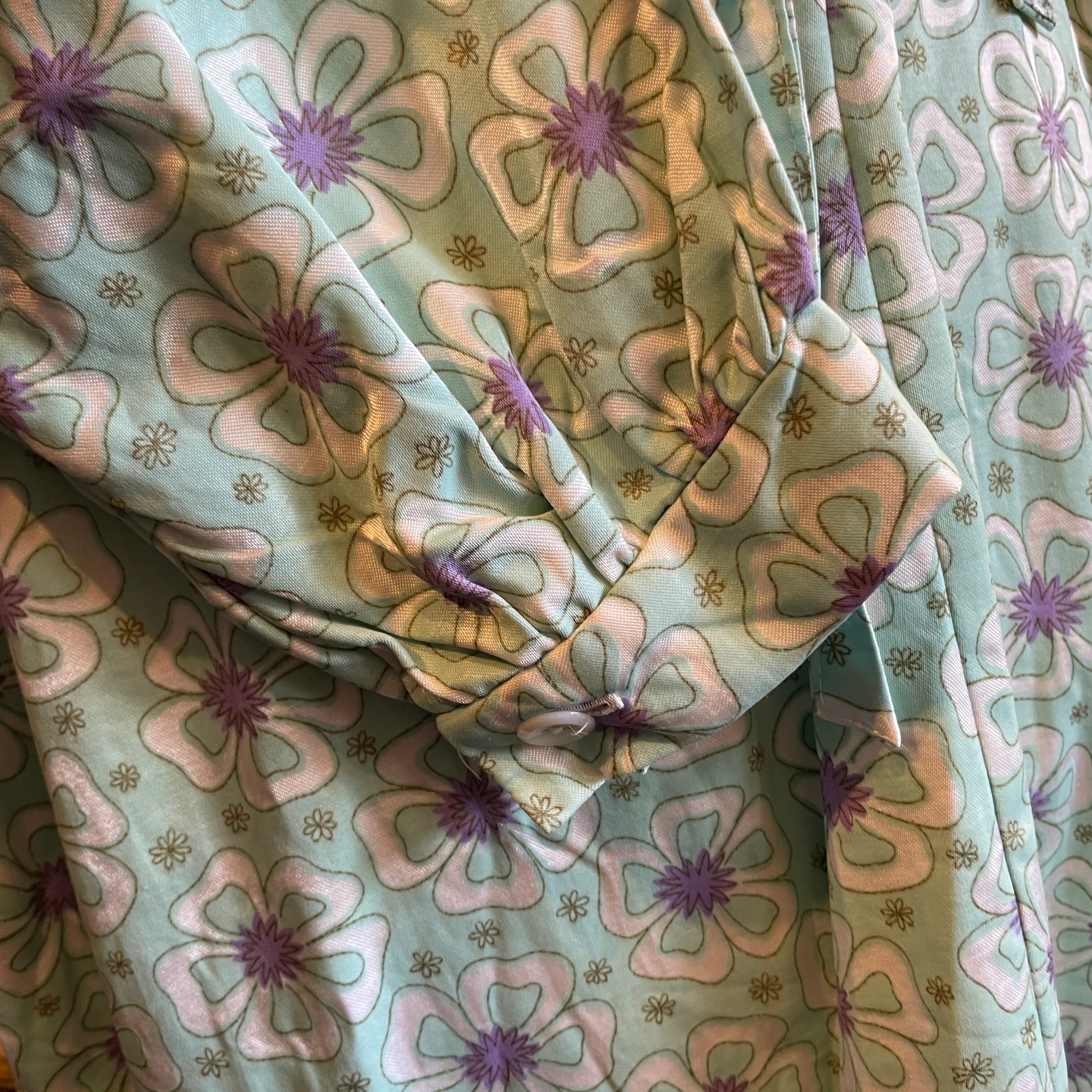 水色 フラワー ナイトドレス ワンピース ヴィンテージ 古着